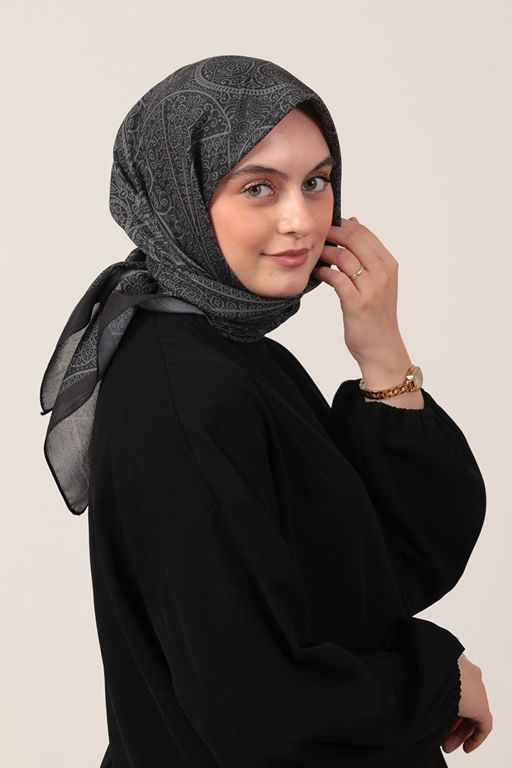 PAMUK İPEK EŞARP - SARMAŞIK DESEN - SİYAH FÜME