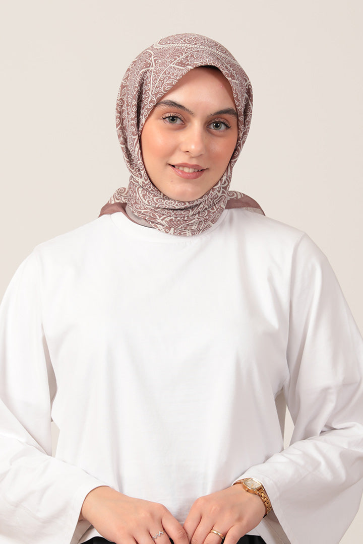 Pamuk İpek Eşarp - Sarmaşık Desen - Tatlı Kahve