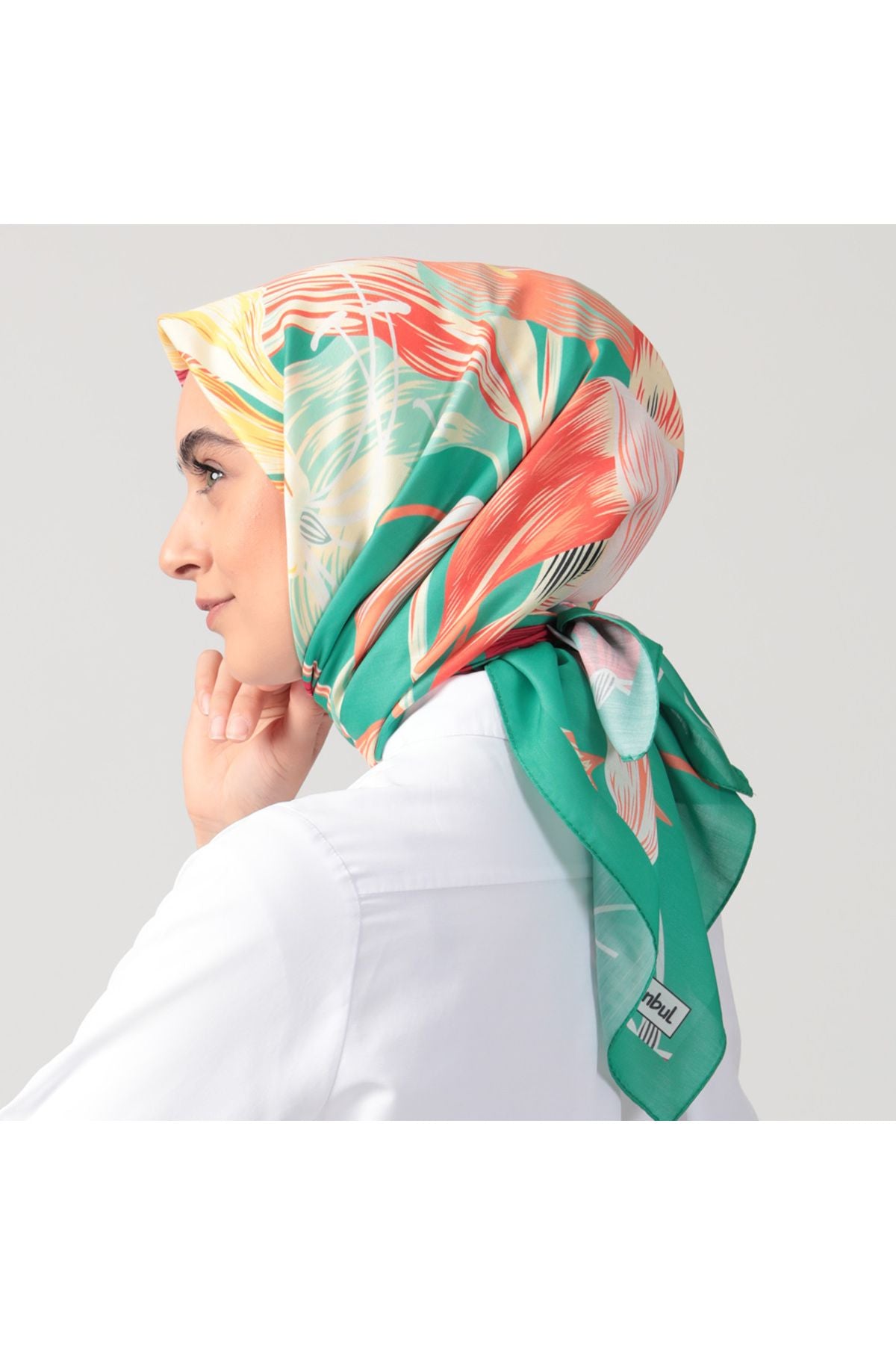 • Pamuk İpek Eşarp - Tropik Desen - Benetton