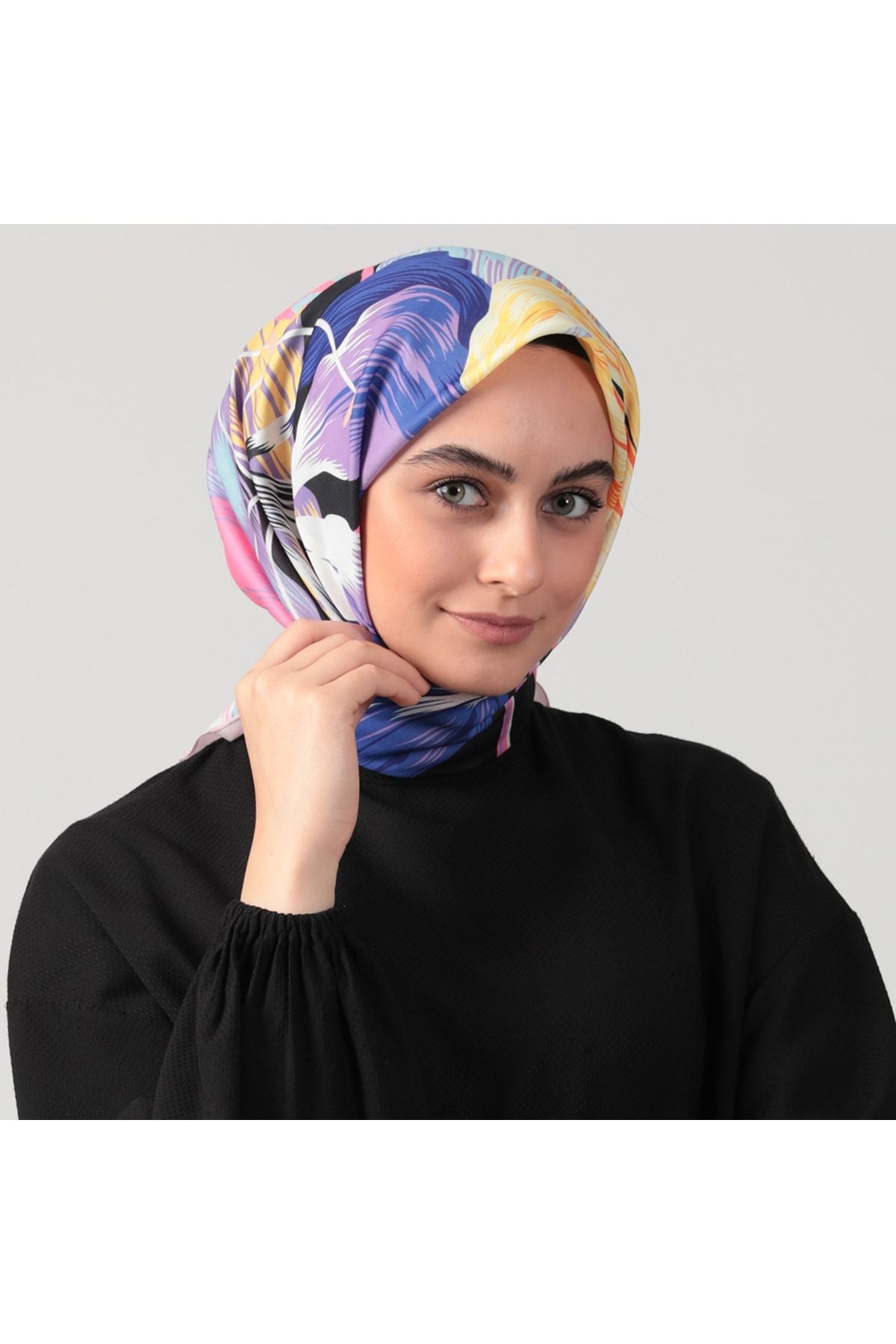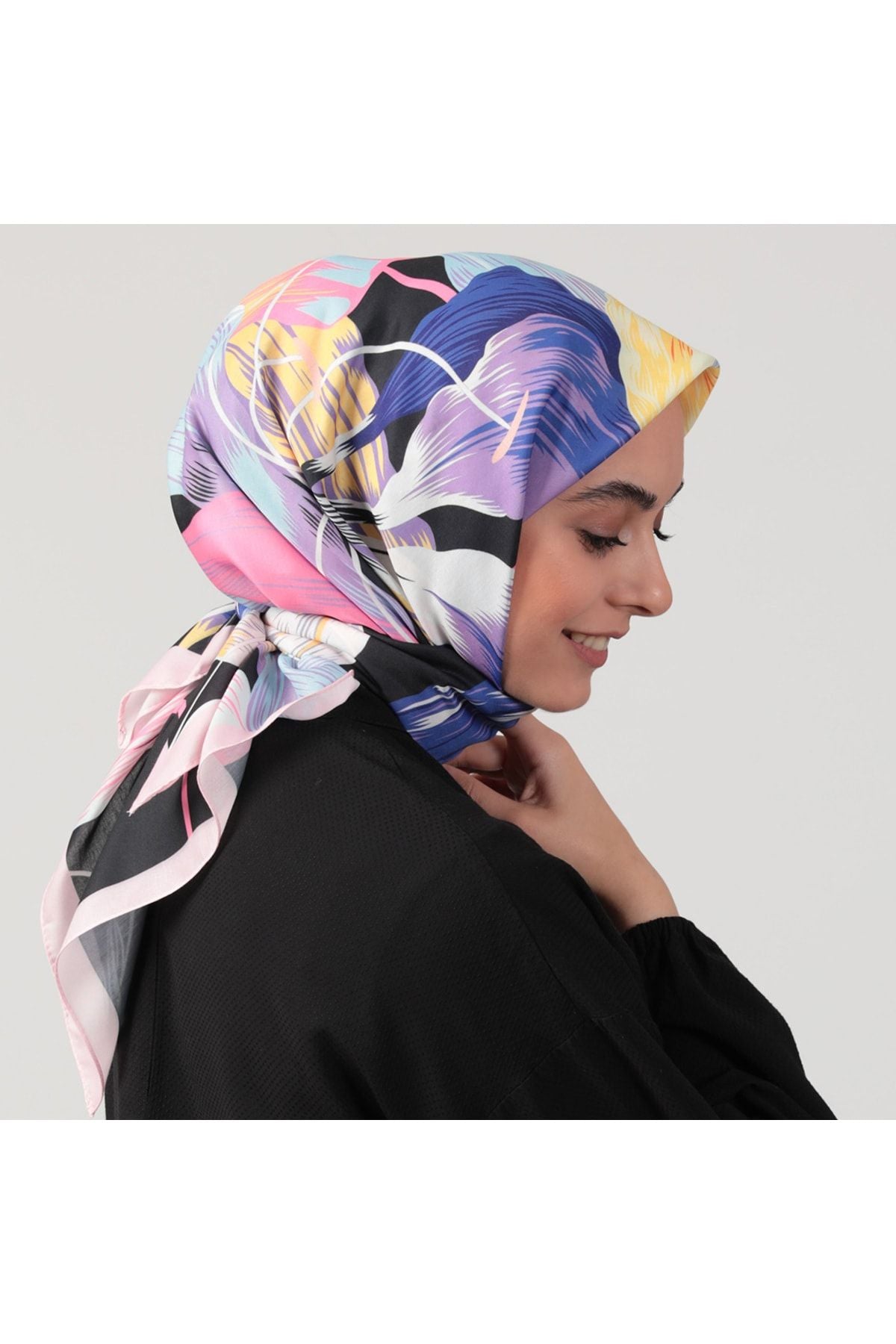 • Pamuk İpek Eşarp - Tropik Desen - Fuşya