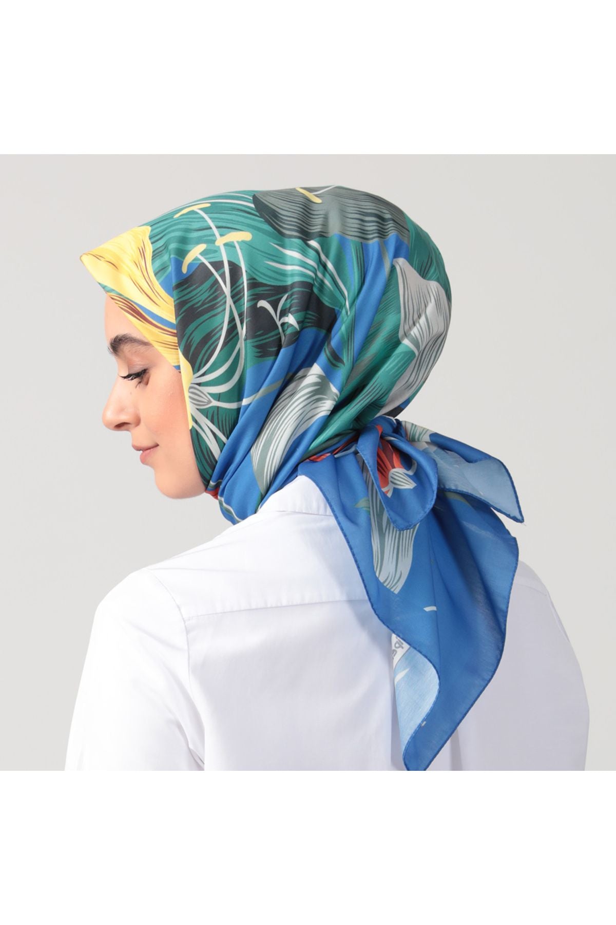 • Pamuk İpek Eşarp - Tropik Desen - İndigo