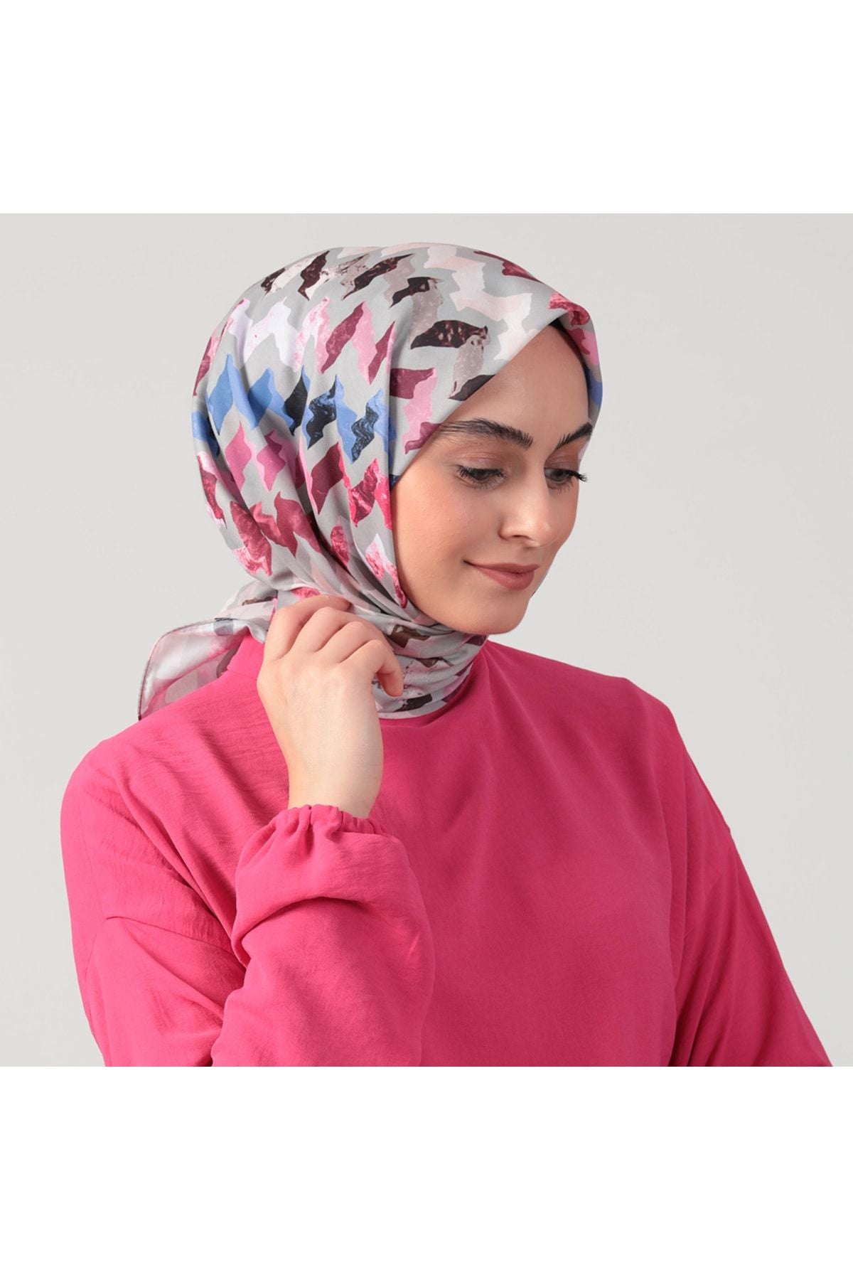 • Pamuk İpek Eşarp - Zigzag Desen - Vizon