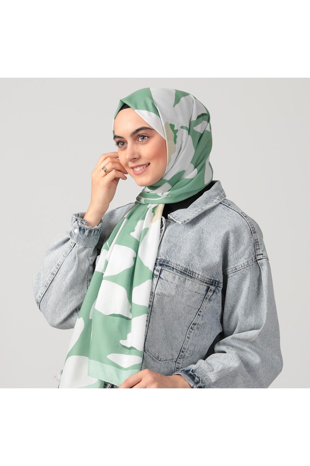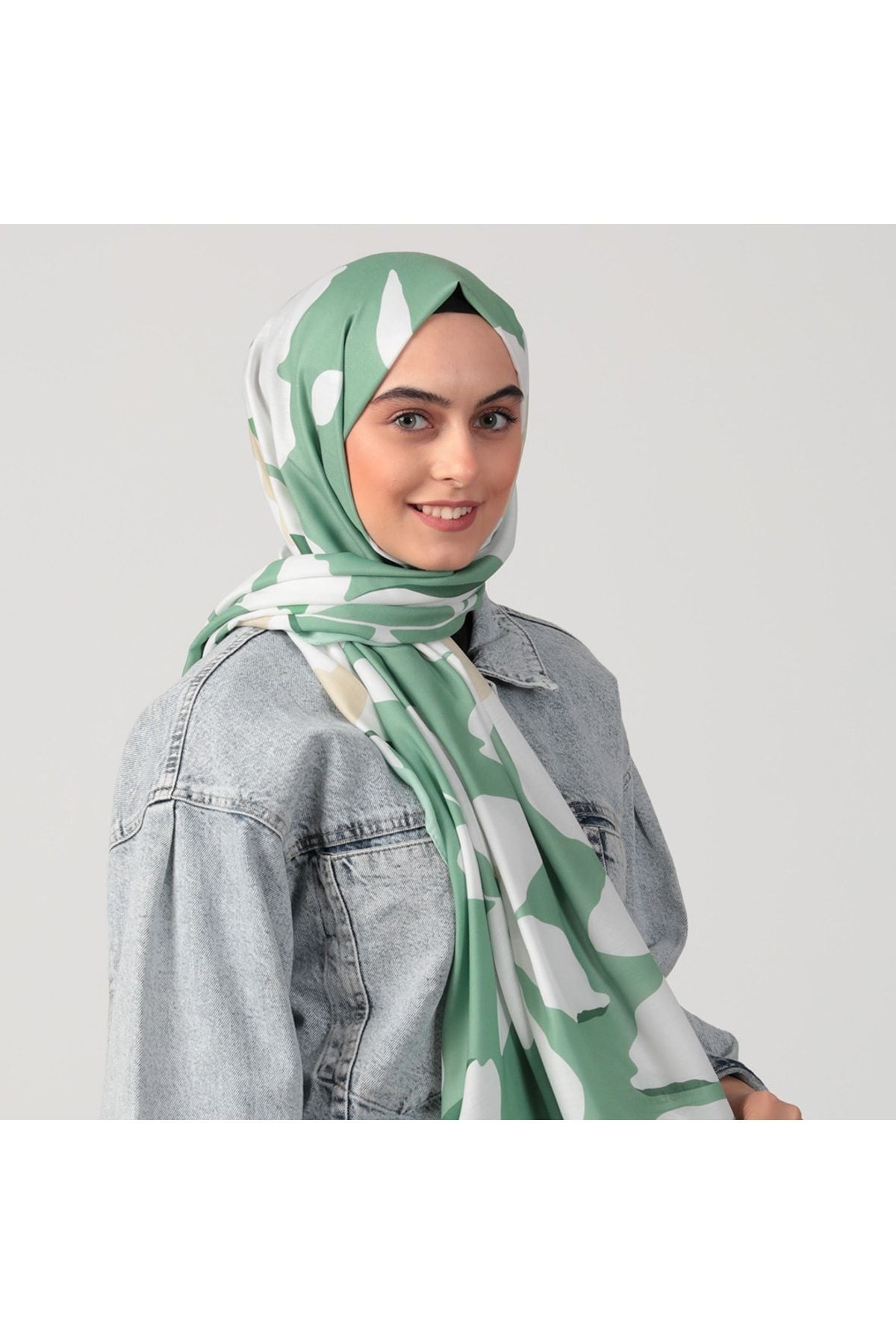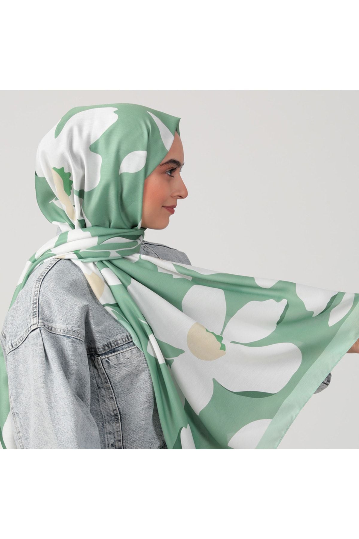 • Pamuk İpek Şal - Açelya Desen - Çimen