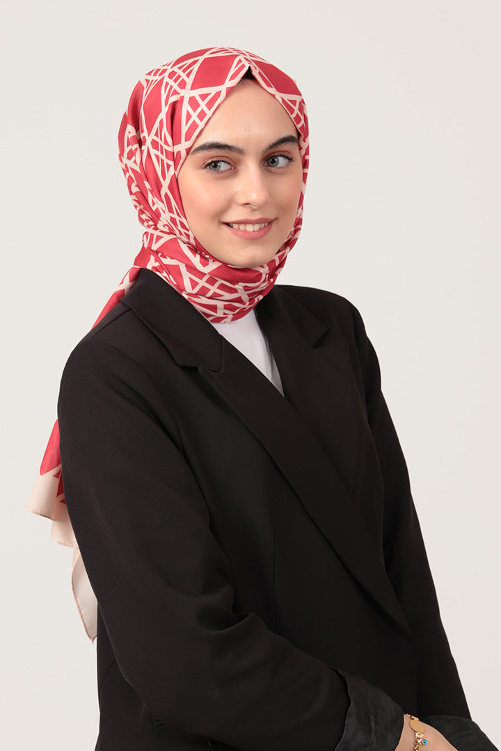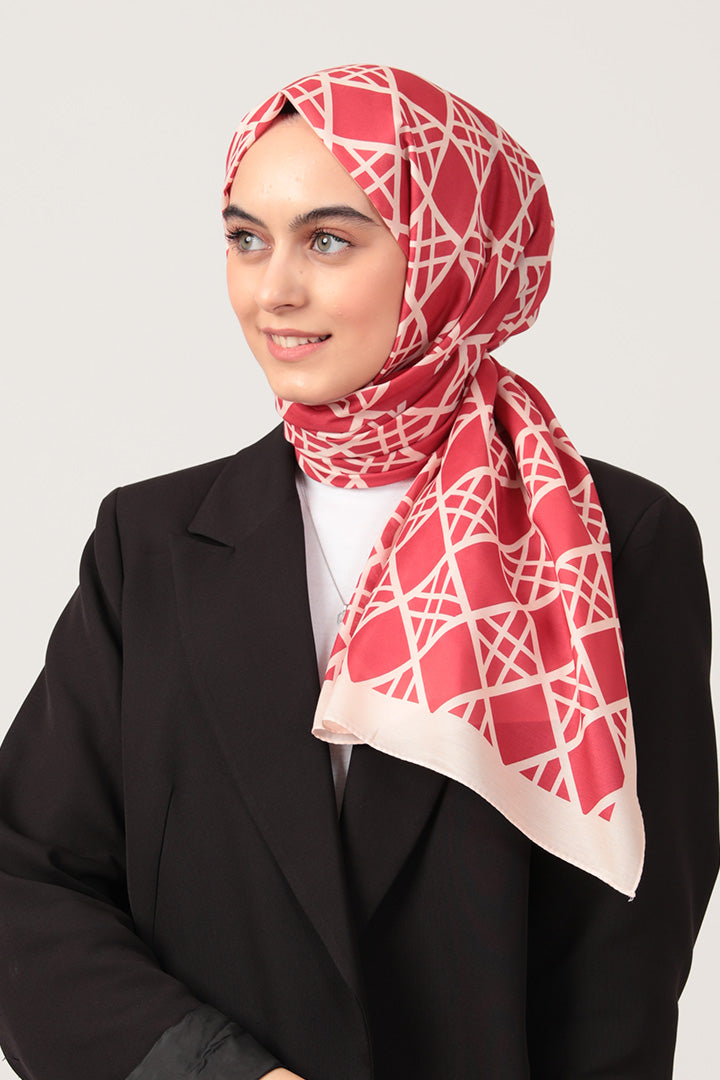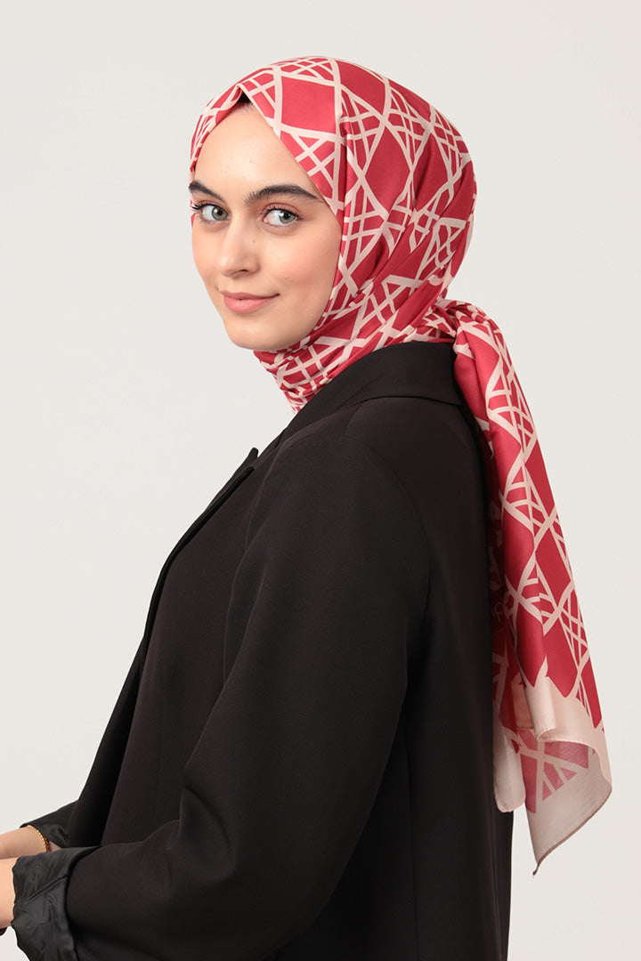 • Pamuk İpek Şal - Baklava Desen - Bordo
