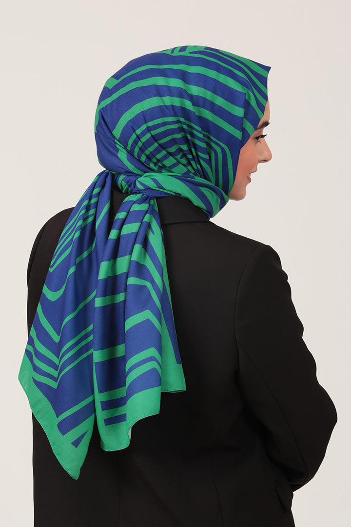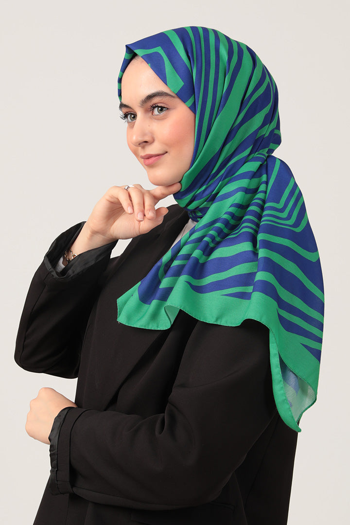 • Pamuk İpek Şal - Çizgi Desen - Benetton Yeşili