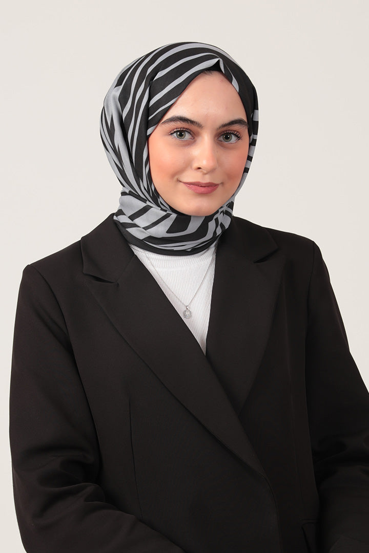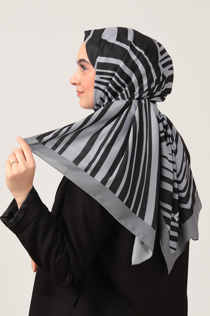 PAMUK İPEK ŞAL - ÇİZGİ DESEN - GRİ