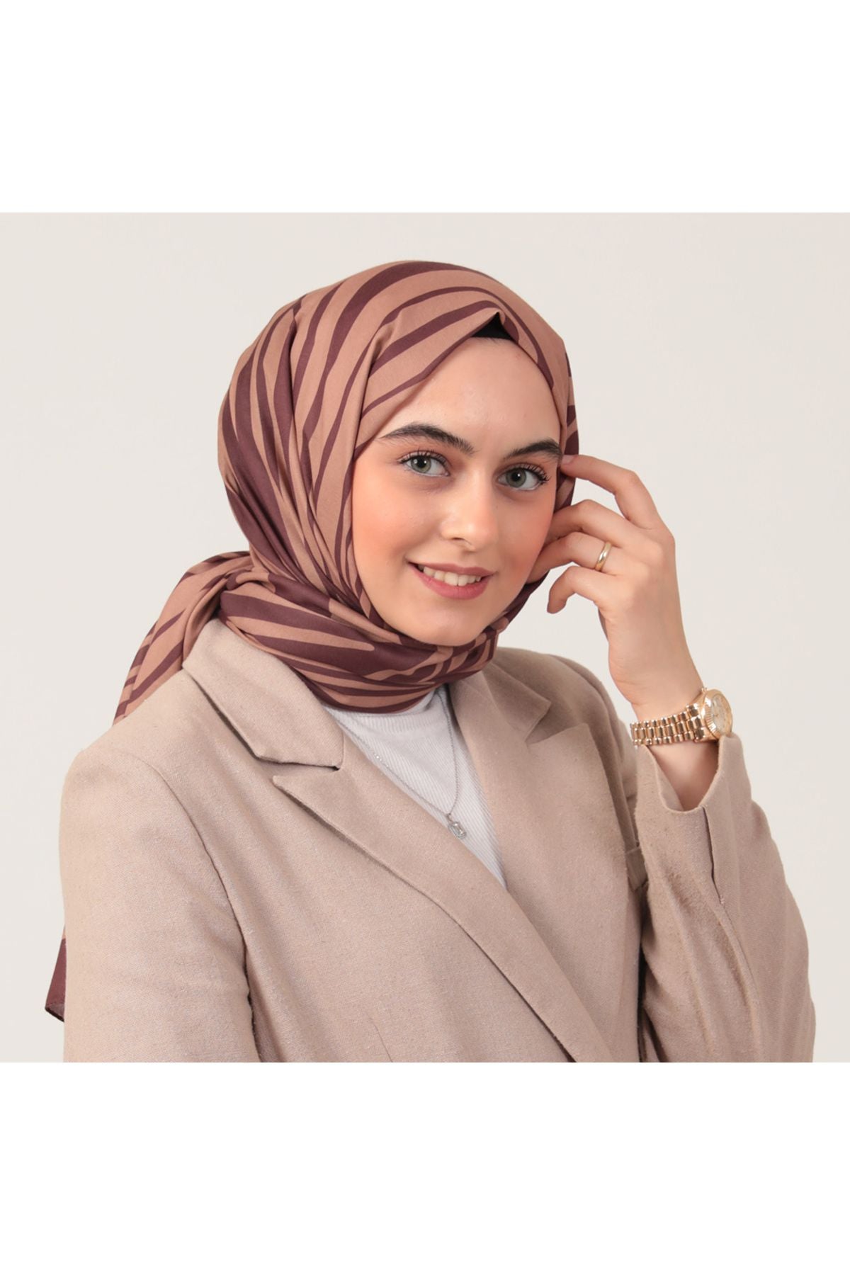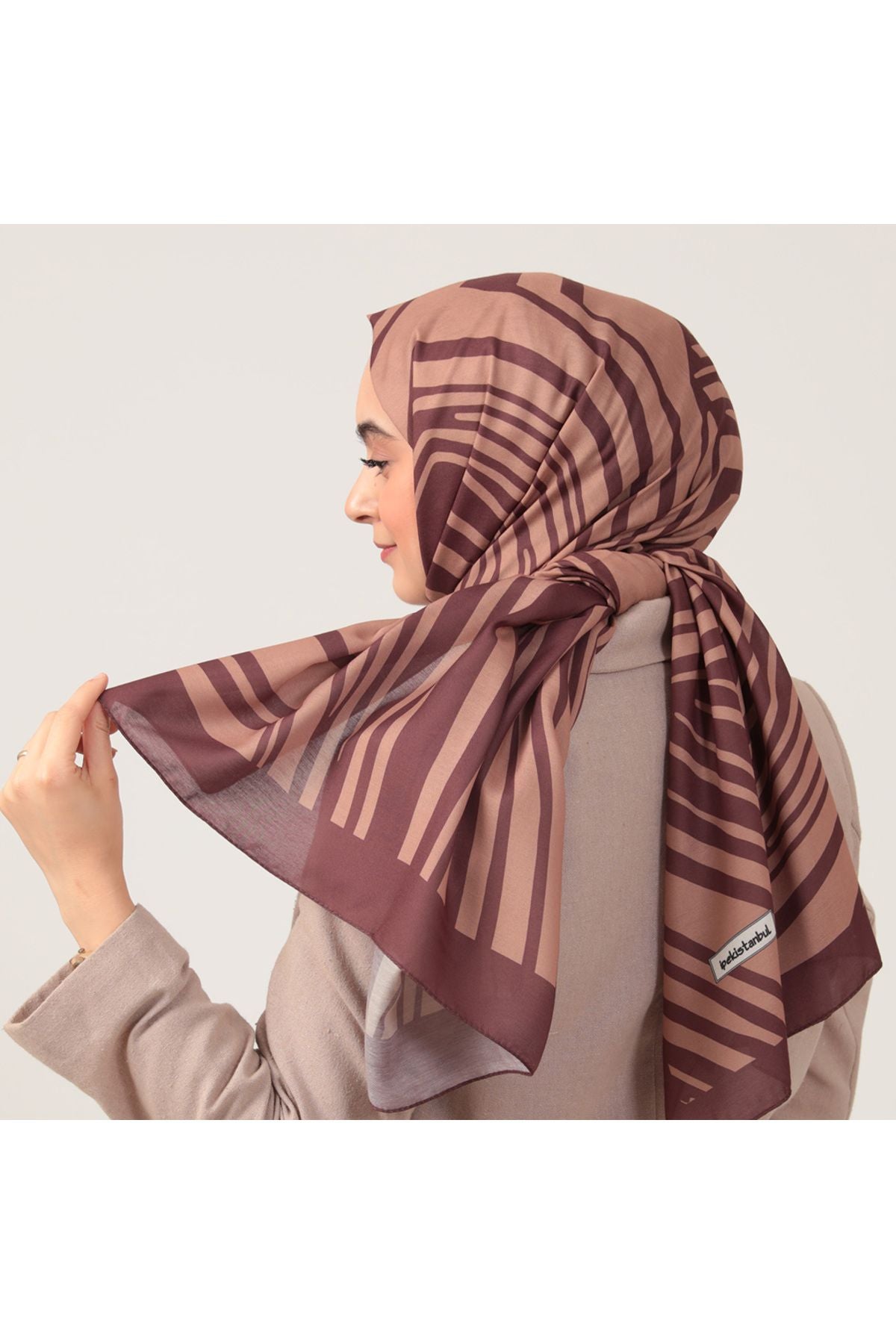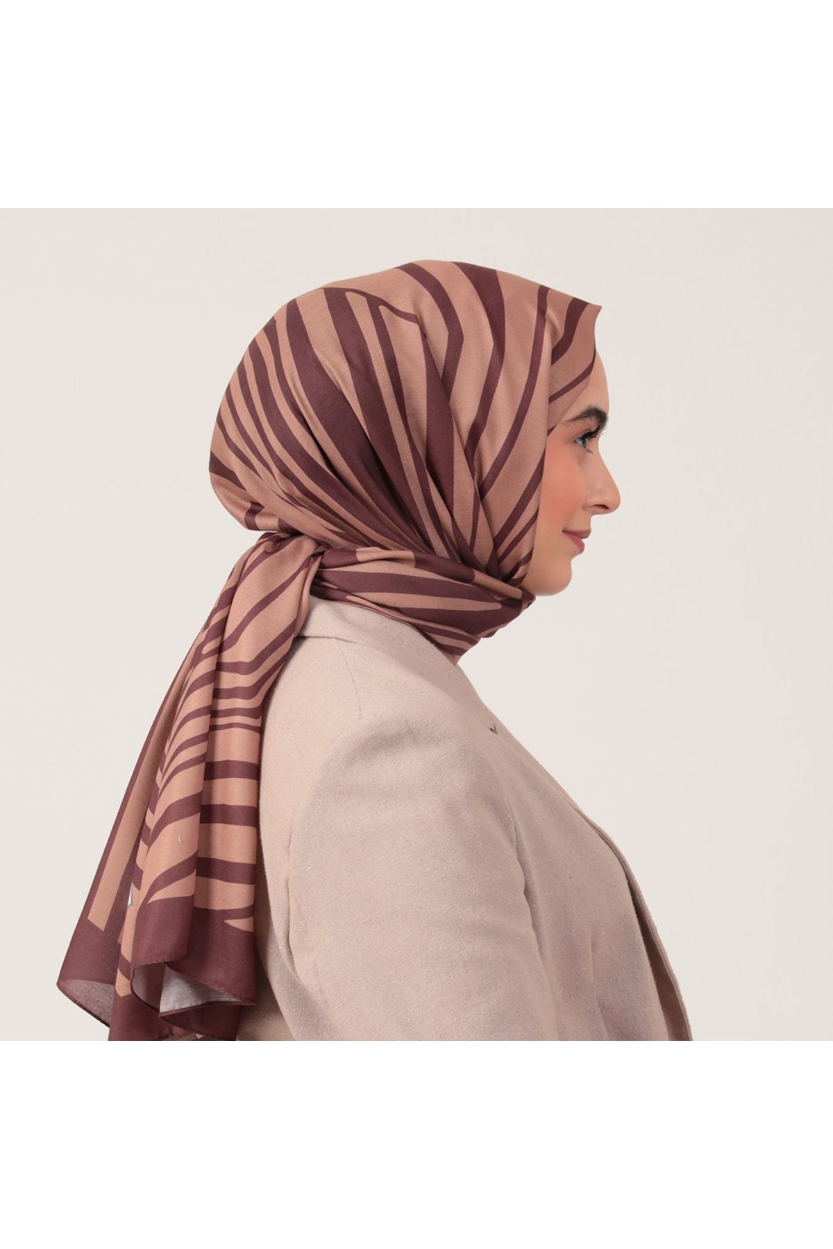 • Pamuk İpek Şal - Çizgi Desen - Kahverengi