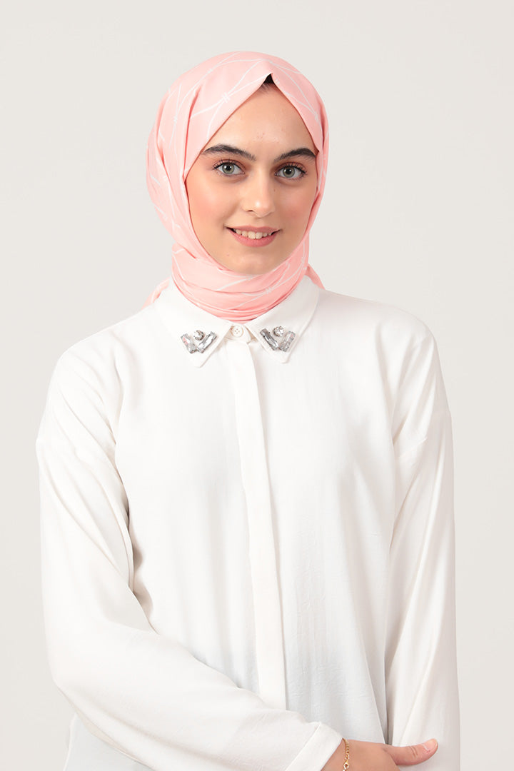 • Pamuk İpek Şal - Dalga Desen - Pudra