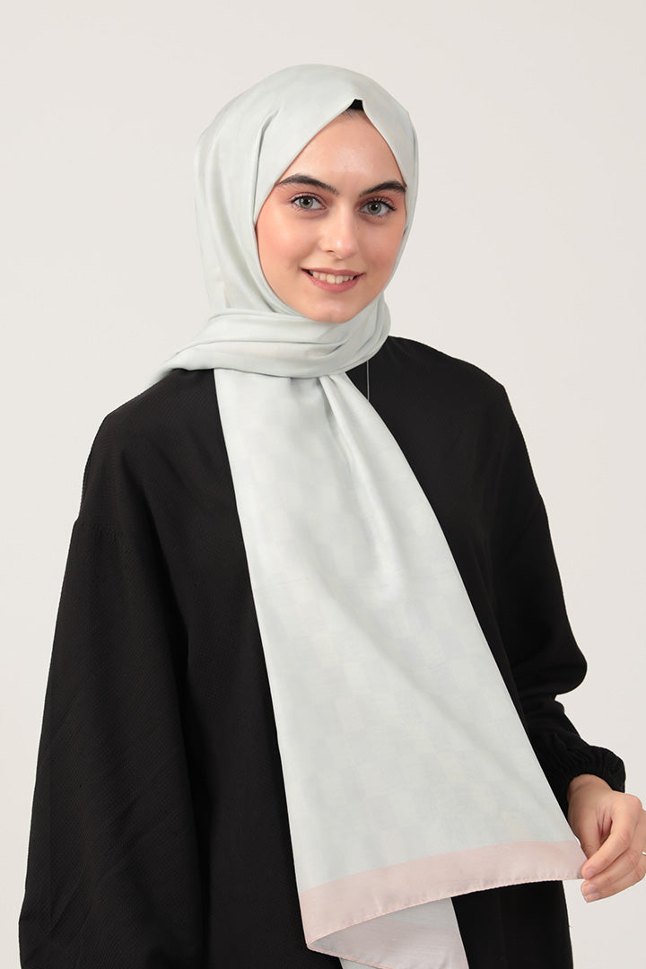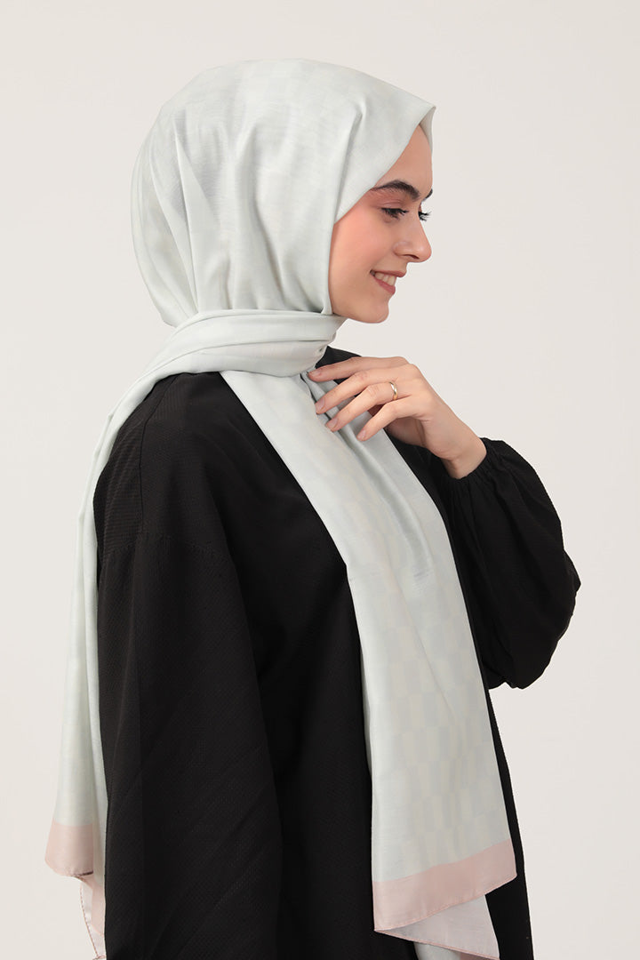 • Pamuk İpek Şal - Dama Desen - Ekru Pudra