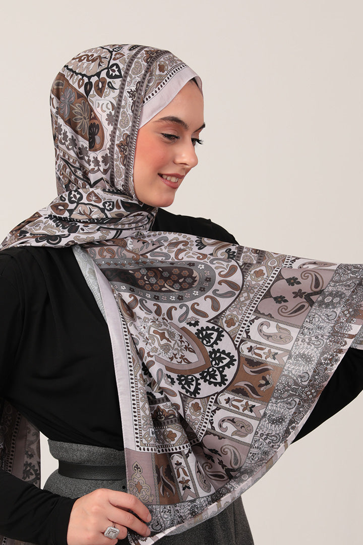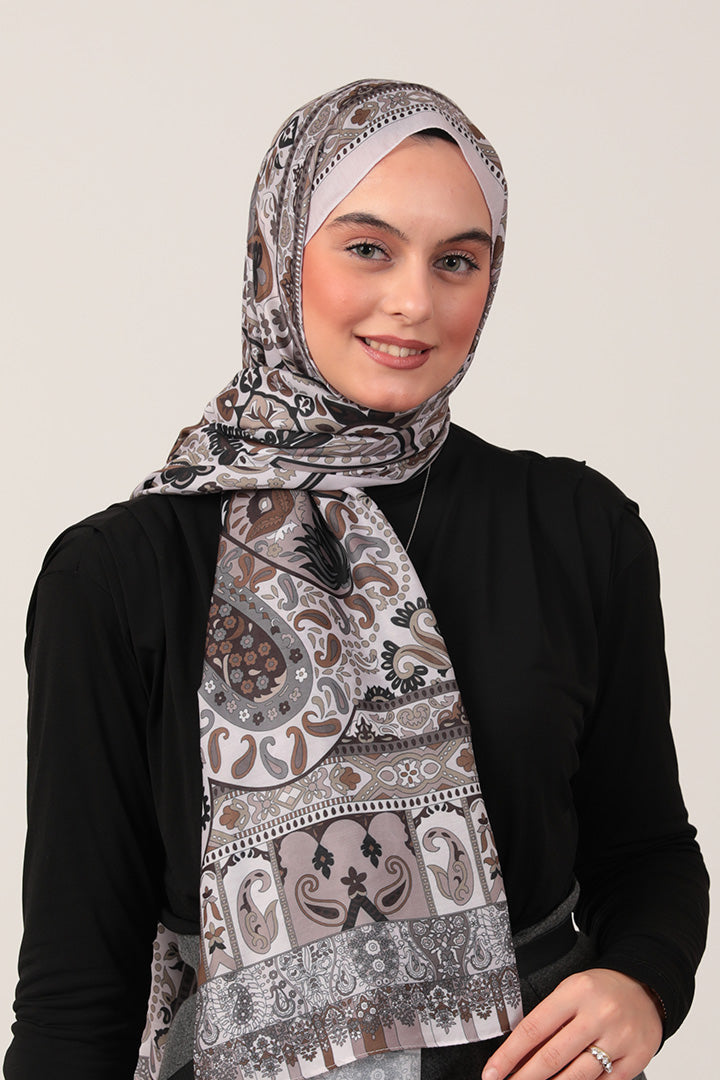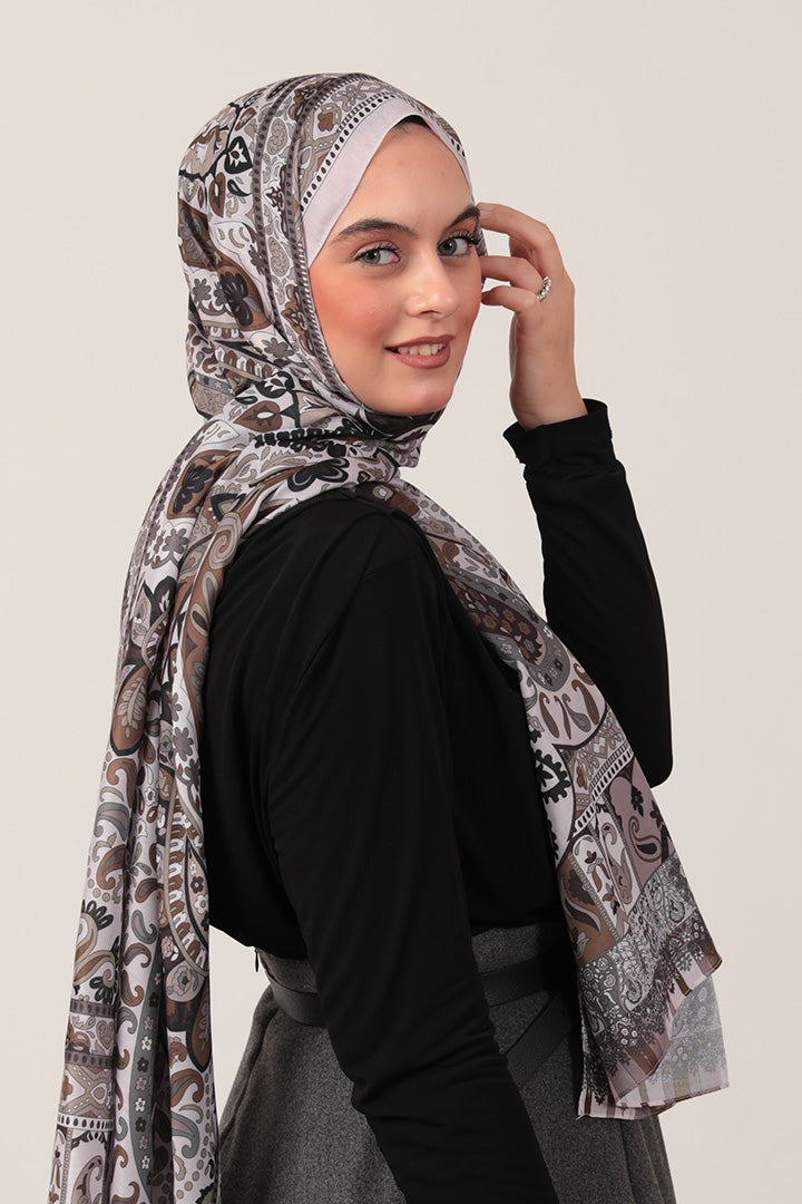 • Pamuk İpek Şal - Damla Desen - Sütlü Kahve