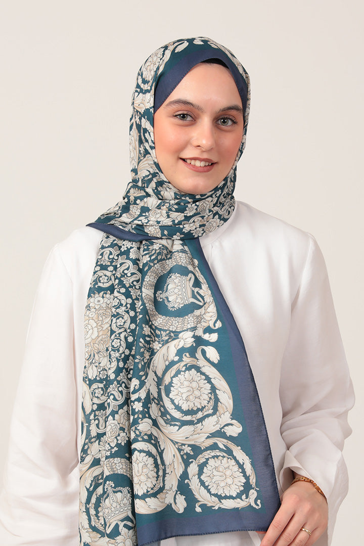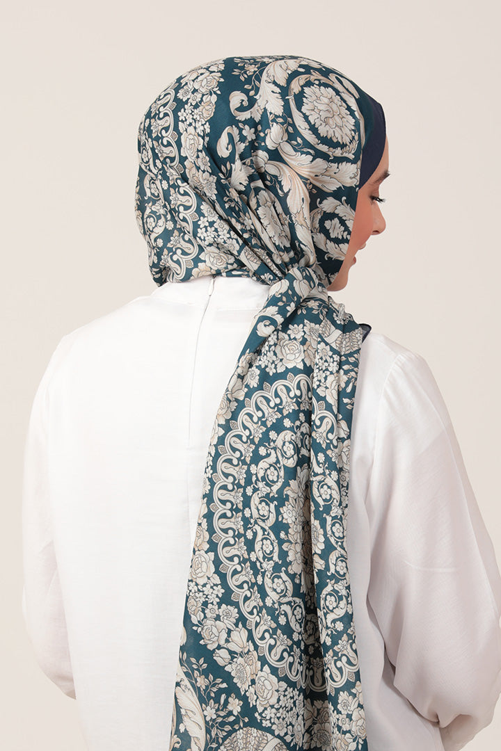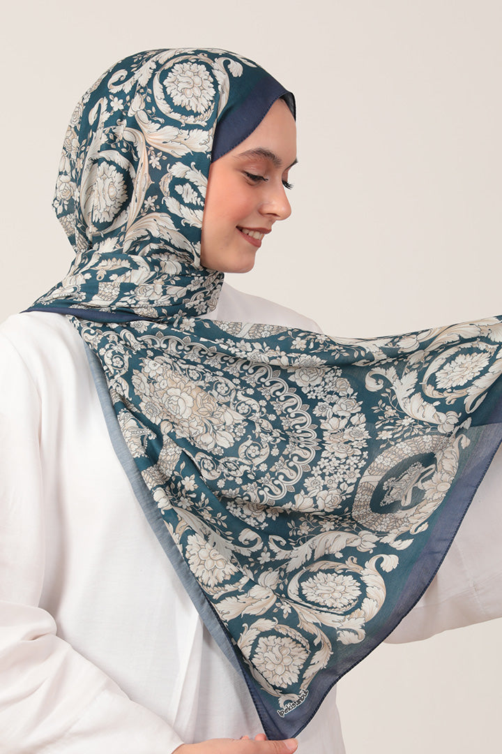 Pamuk İpek Şal - Dönence Desen - Petrol Yeşili