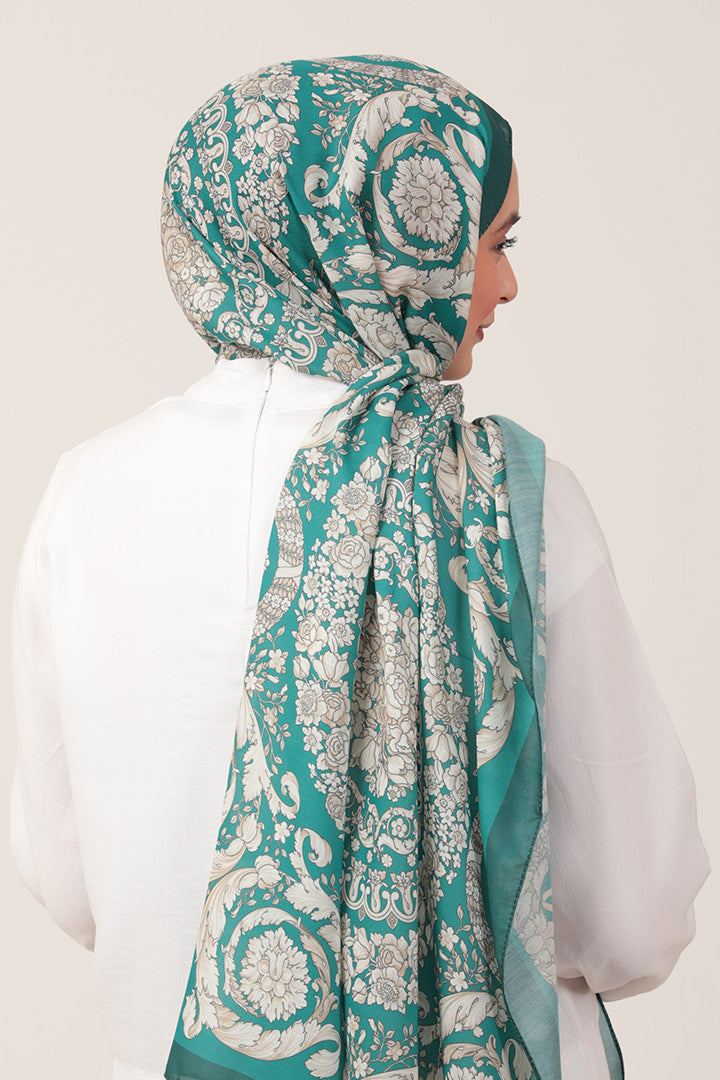 PAMUK İPEK ŞAL - DÖNENCE DESEN - ZÜMRÜT YEŞİLİ