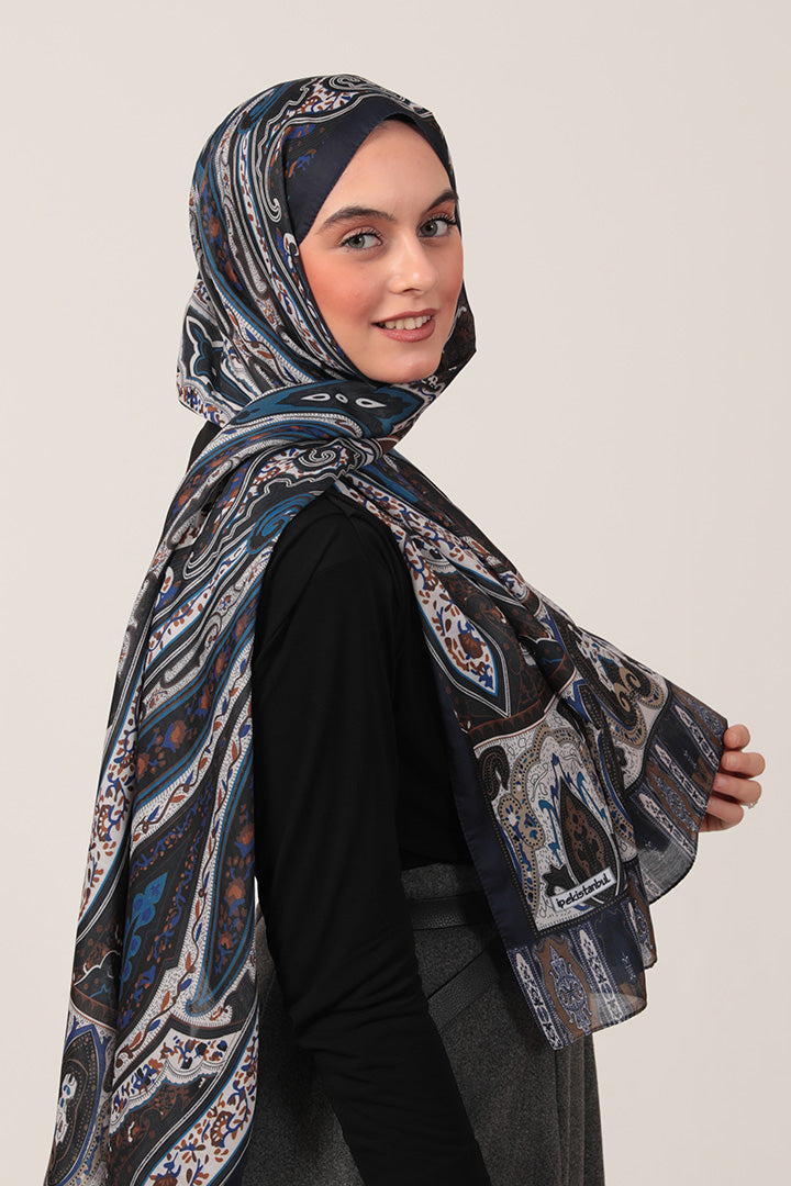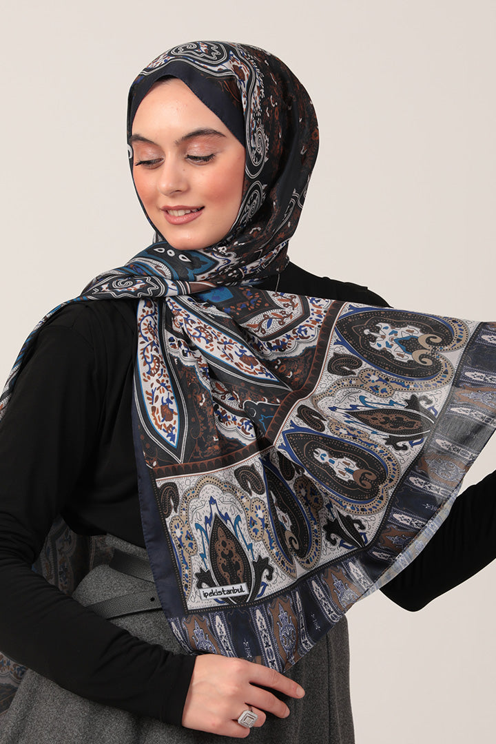 PAMUK İPEK ŞAL - ETNİCH DESEN - LACİVERT CAMEL