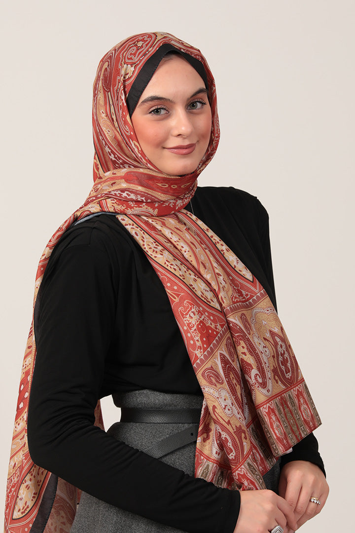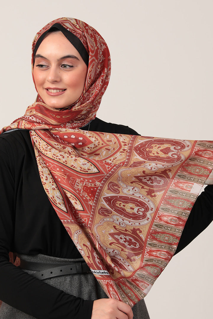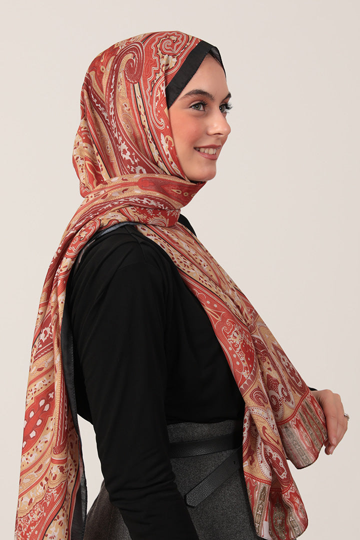 • Pamuk İpek Şal - Etnich Desen - Turuncu