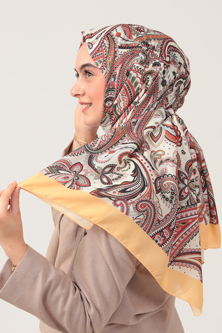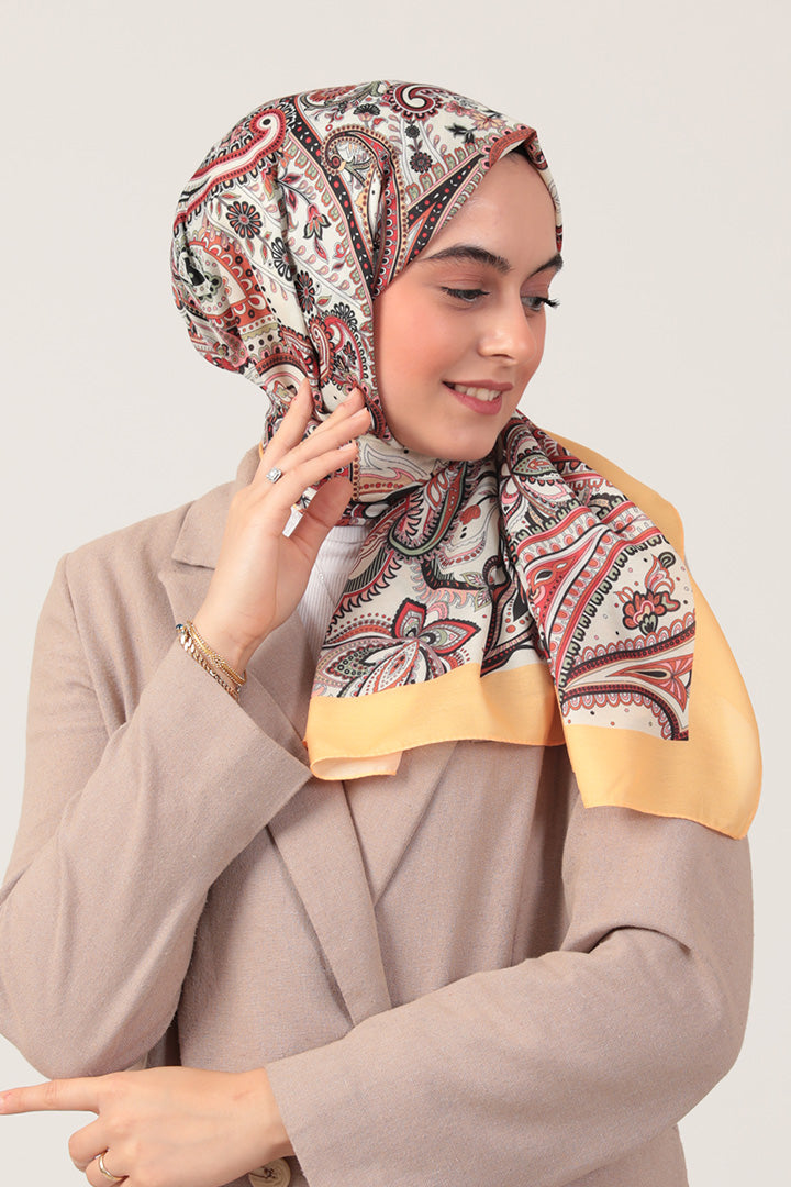 • Pamuk İpek Şal - Etnik Desen - Sarı