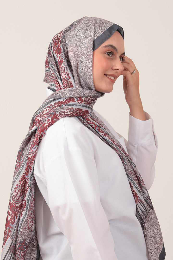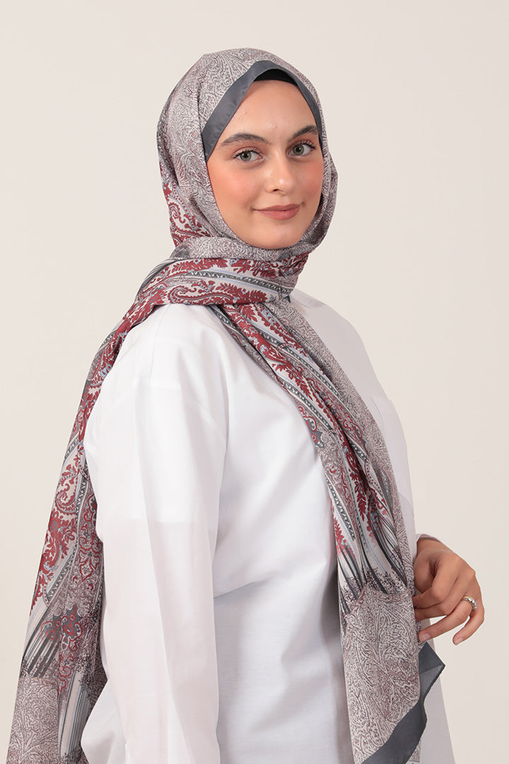 • Pamuk İpek Şal - Etro Desen - Füme Bordo