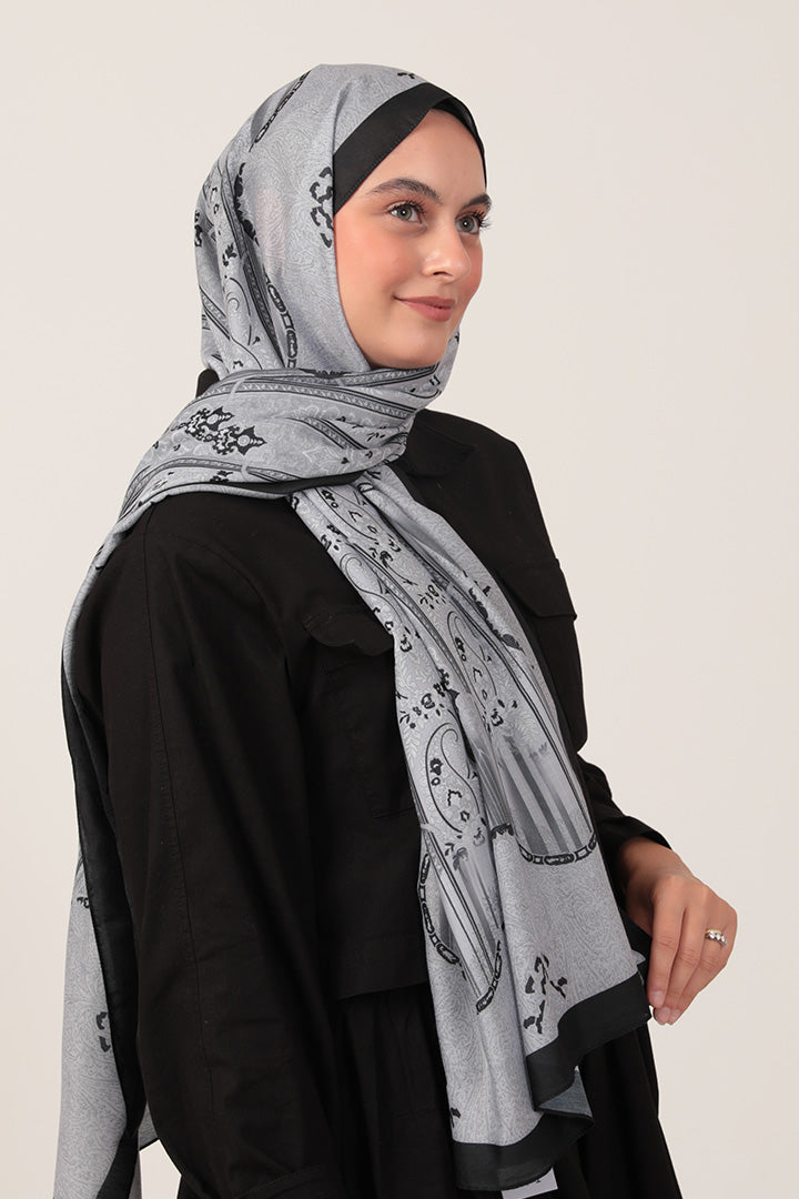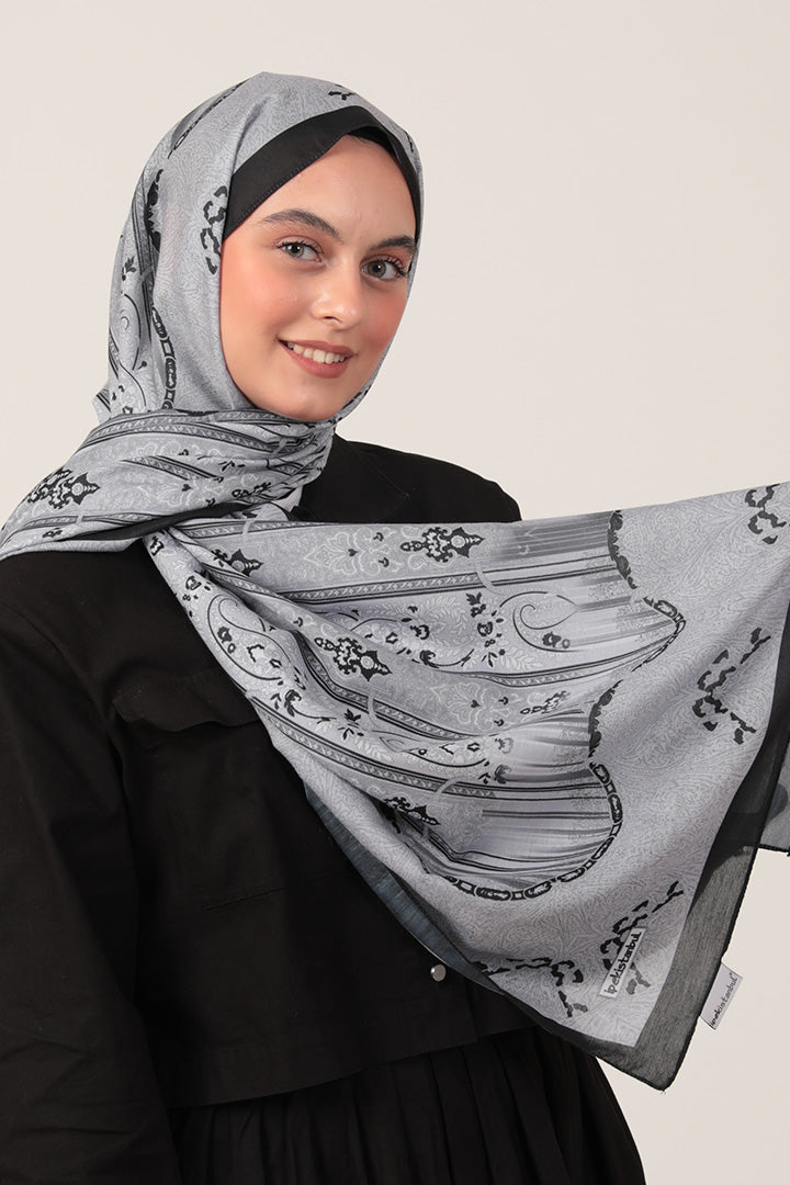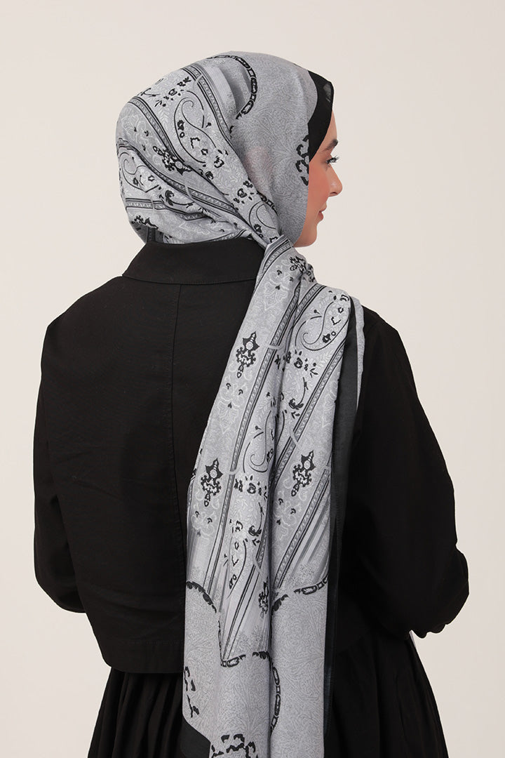 PAMUK İPEK ŞAL - ETRO DESEN - GRİ