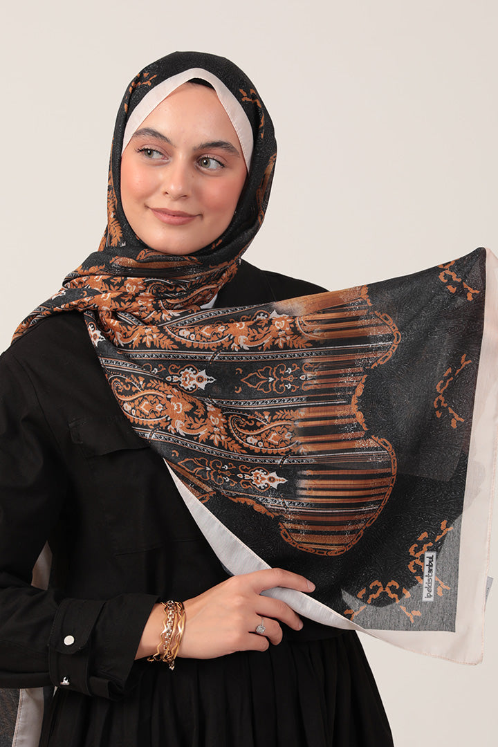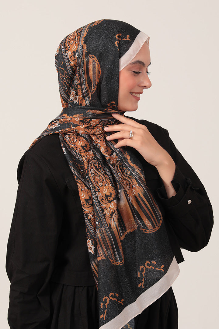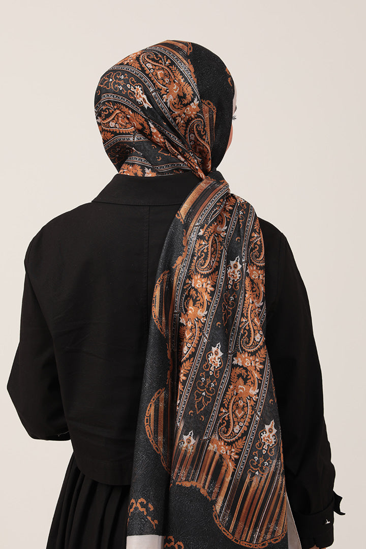 • Pamuk İpek Şal - Etro Desen - Siyah Krem