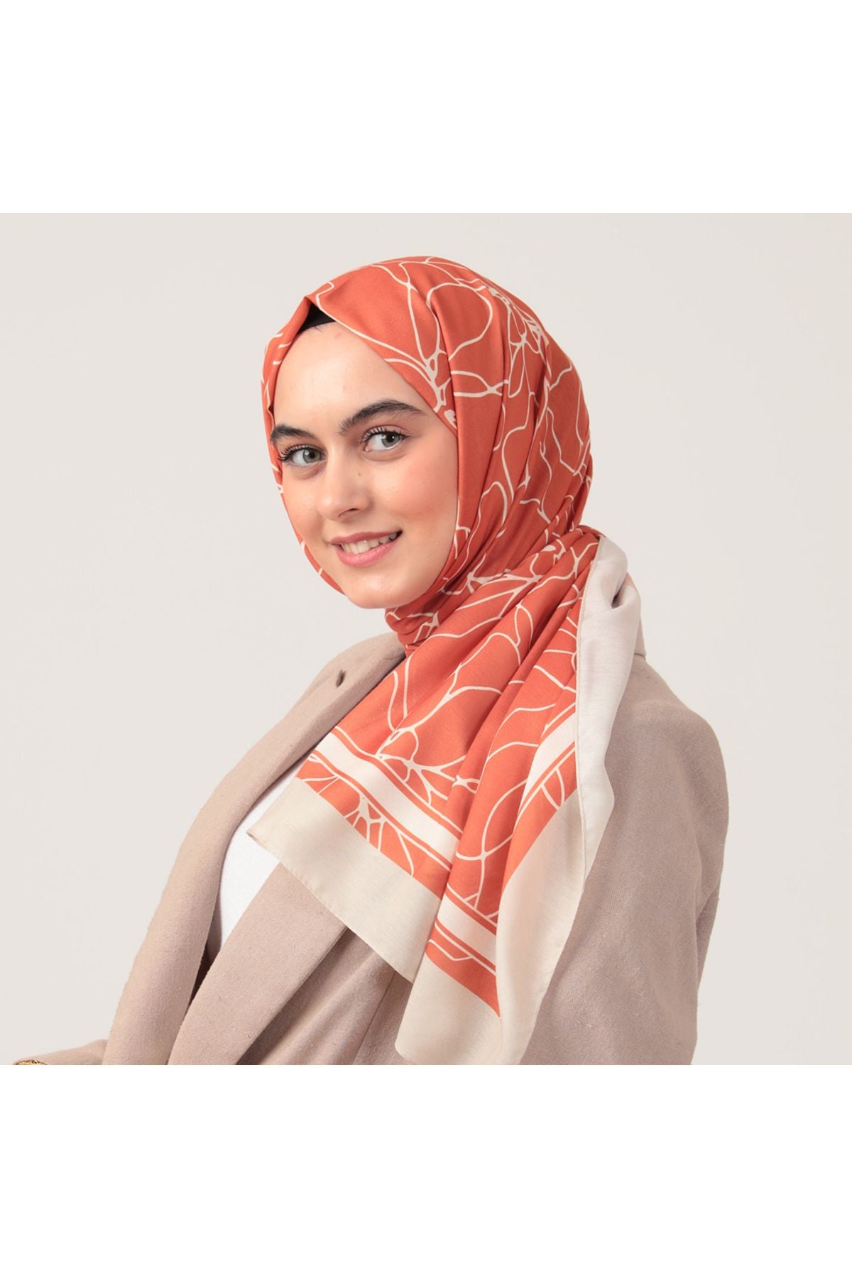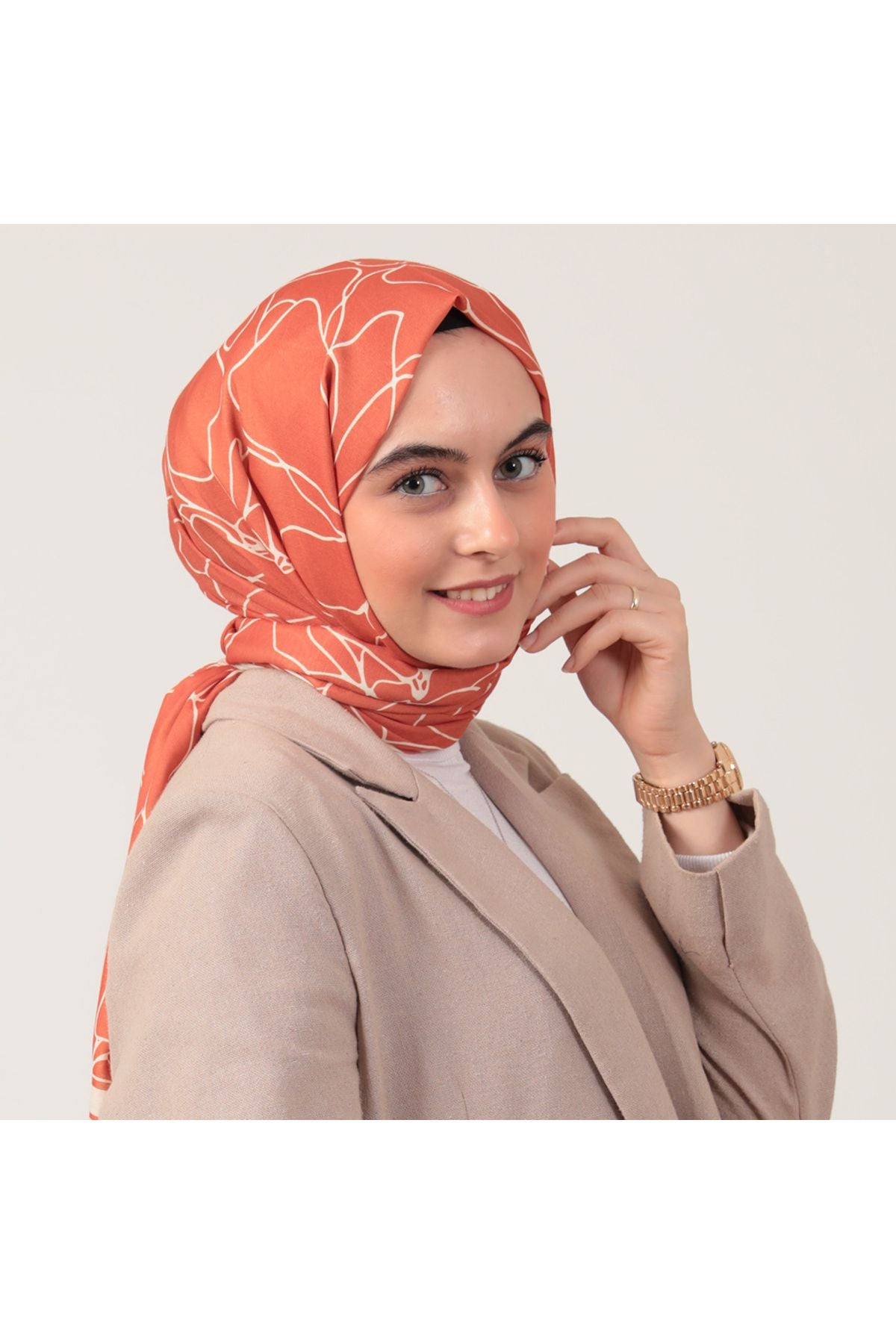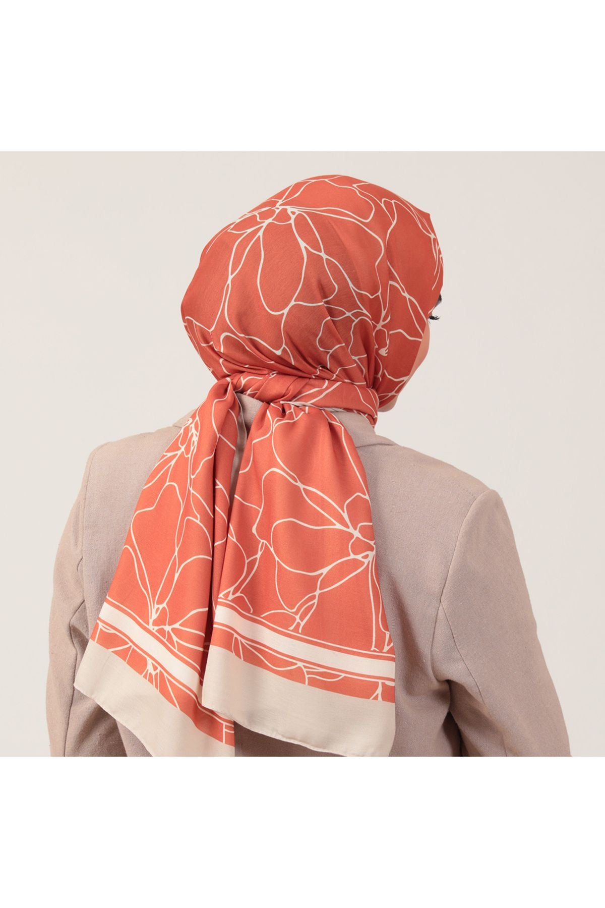• Pamuk İpek Şal - Gelincik Desen - Tarçın