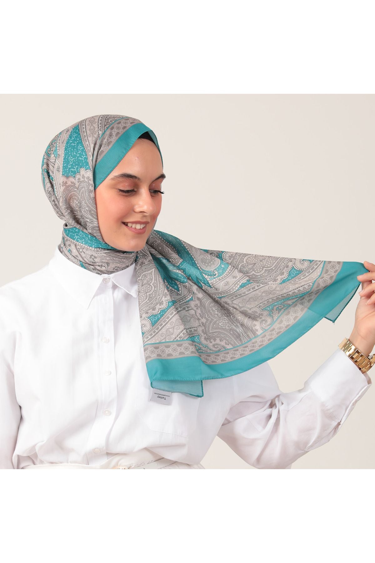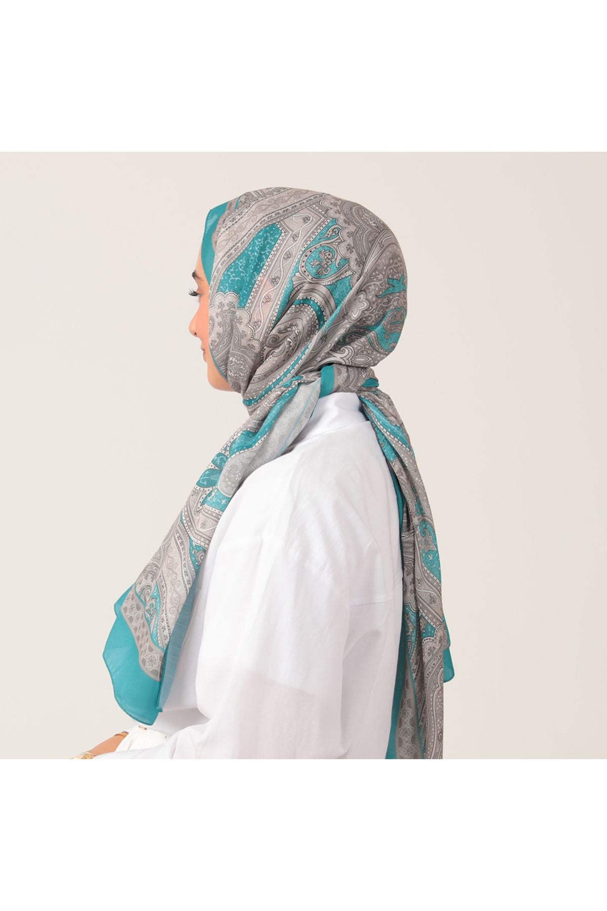 • Pamuk İpek Şal - Hint Desen - Cam Göbeği
