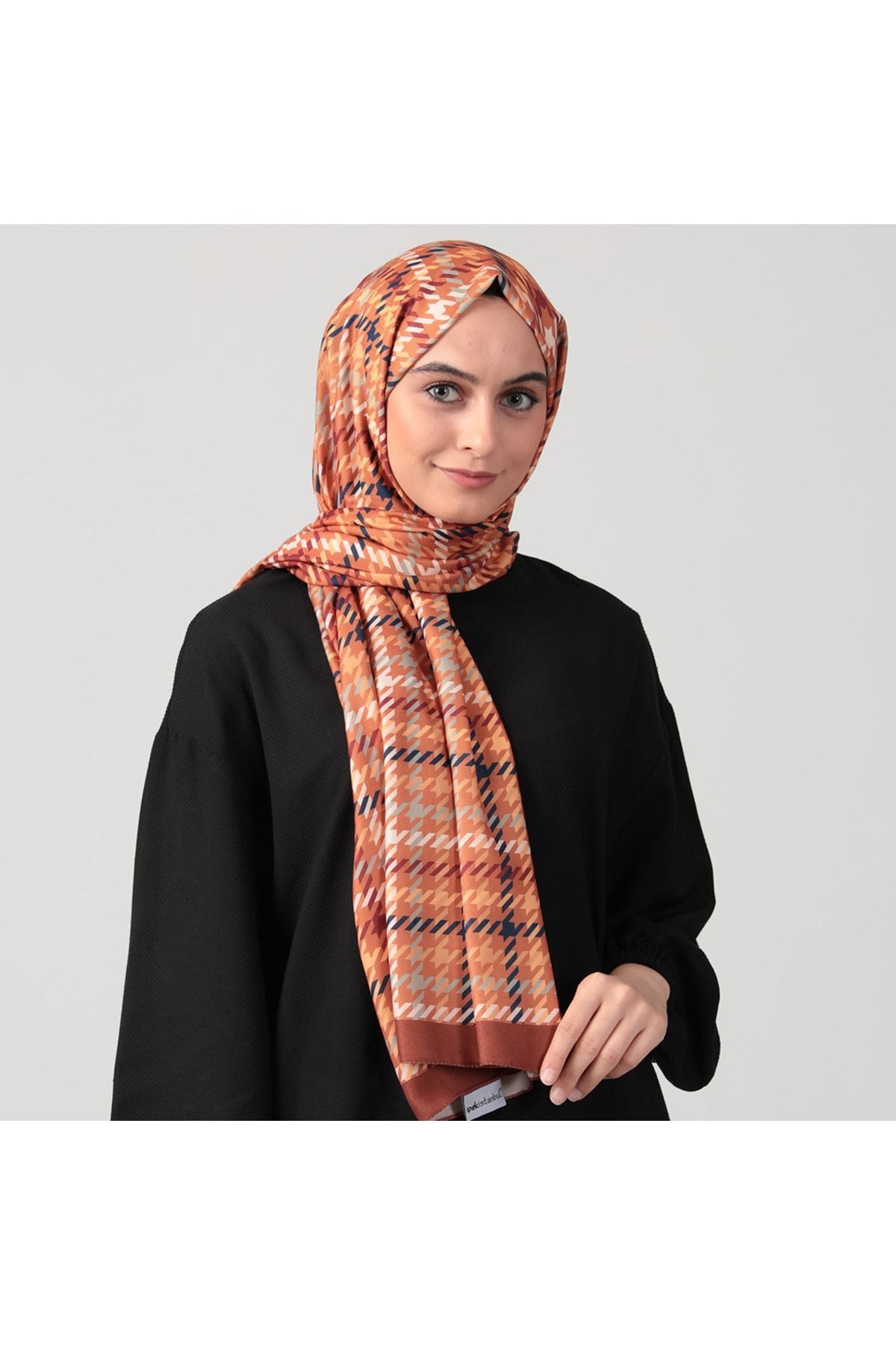 • Pamuk İpek Şal - Kazayağı Desen - Tarçın