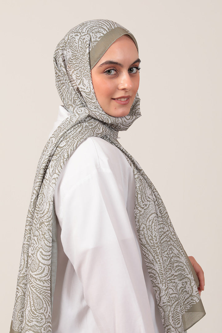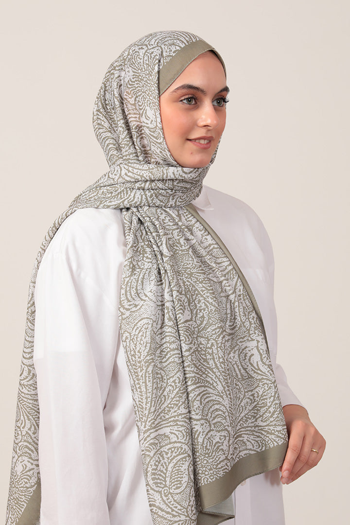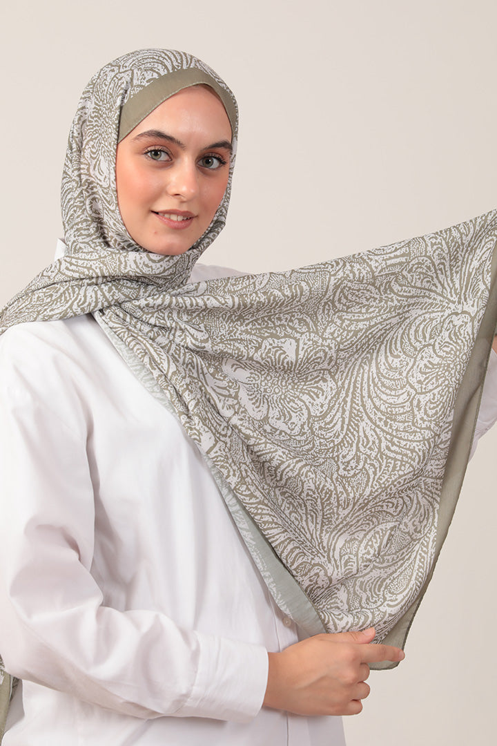Pamuk İpek Şal Lalezar Desen Çağla Yeşili