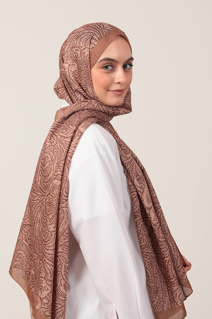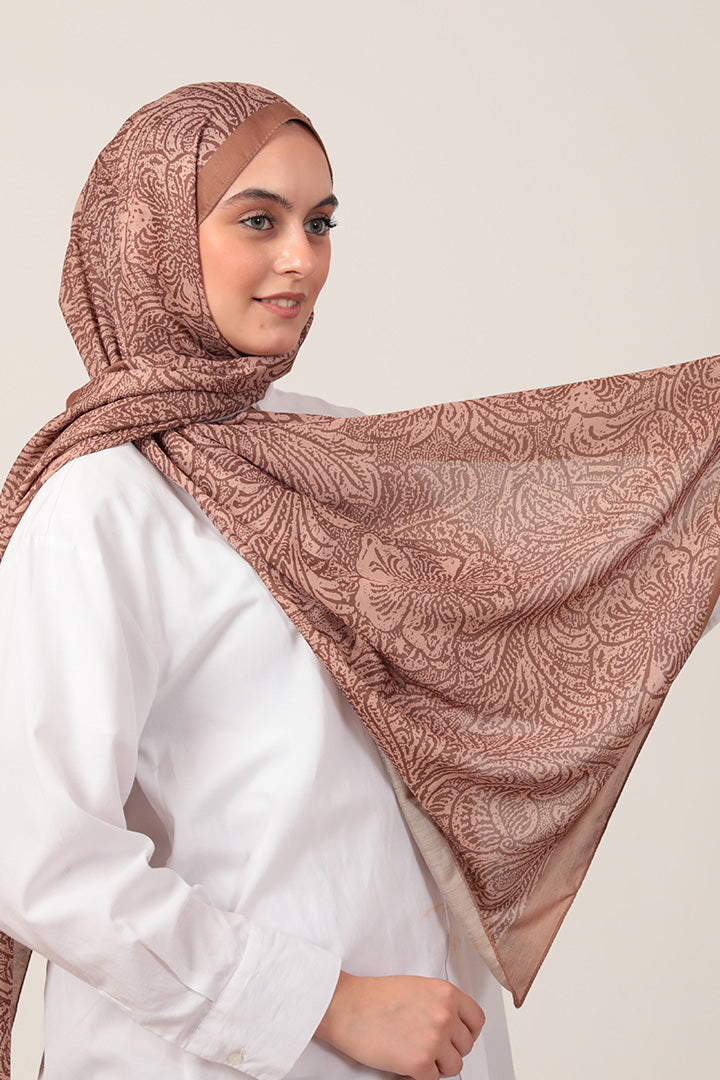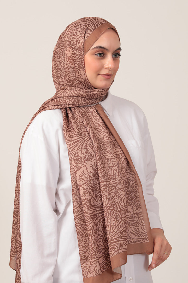 Pamuk İpek Şal - Lalezar Desen - Karamel