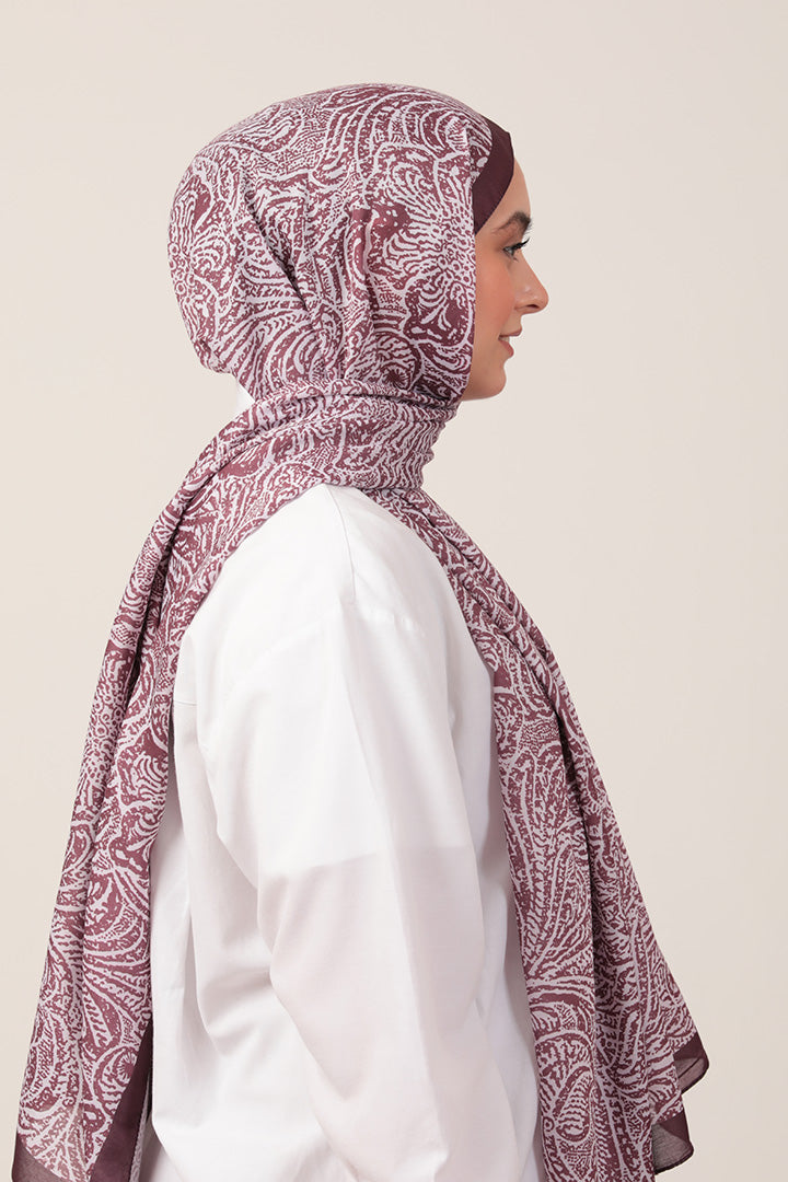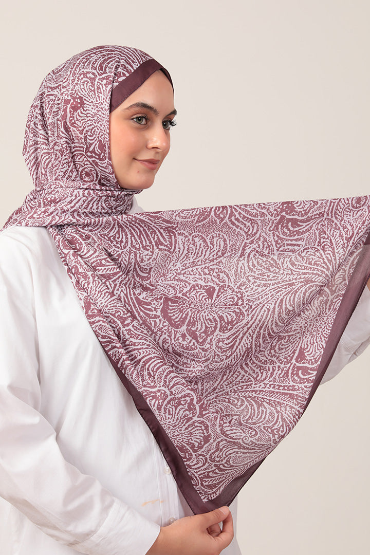 Pamuk İpek Şal - Lalezar Desen - Mürdüm