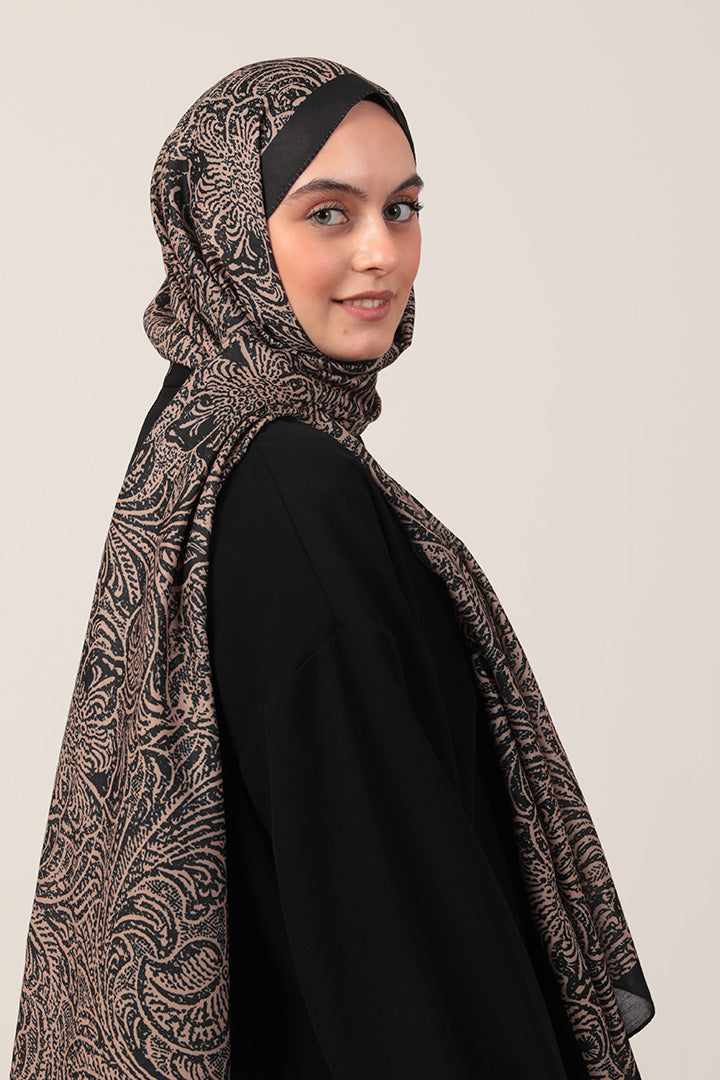 Pamuk İpek Şal Lalezar Desen Siyah Gold