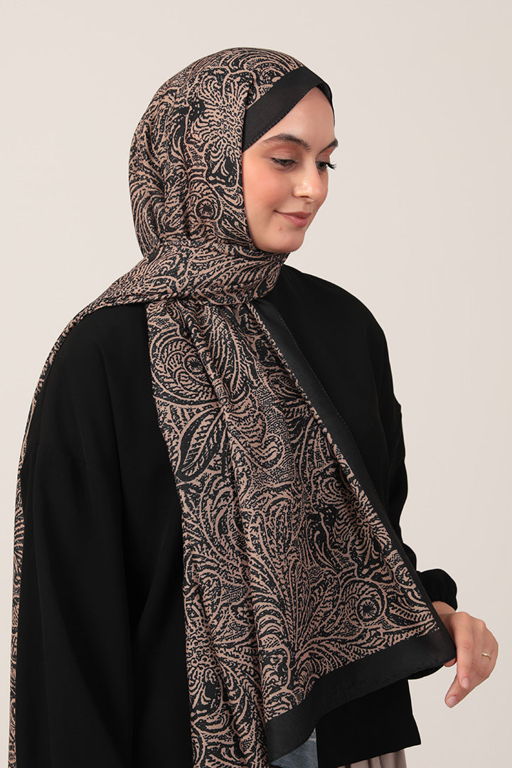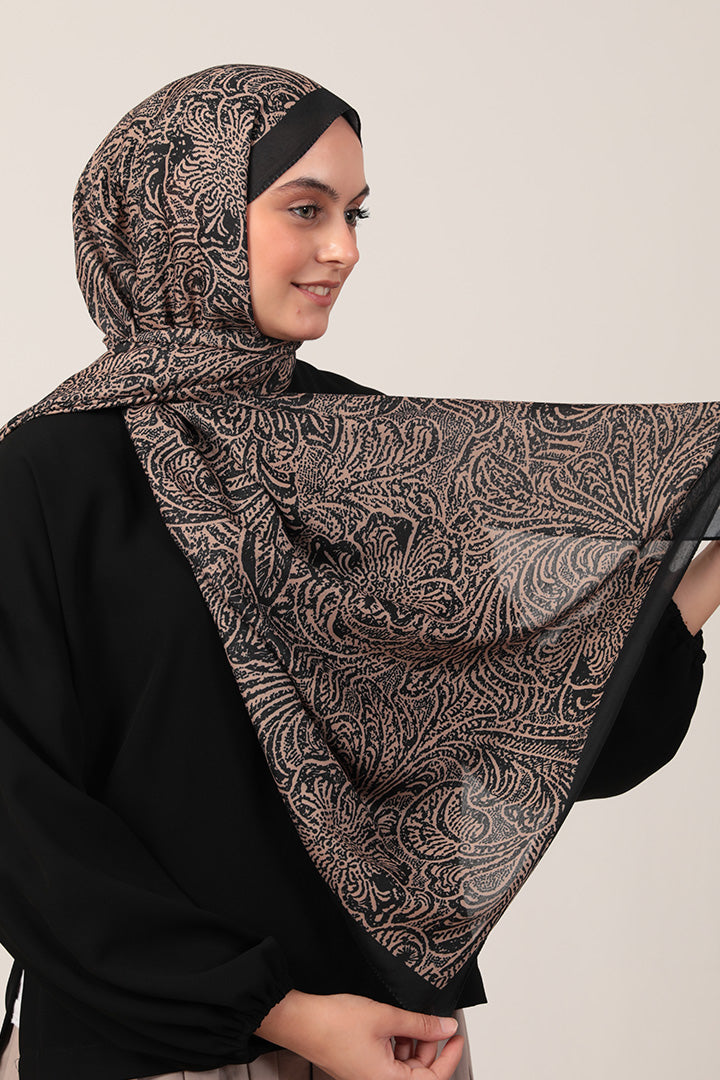 Pamuk İpek Şal - Lalezar Desen - Siyah Gold