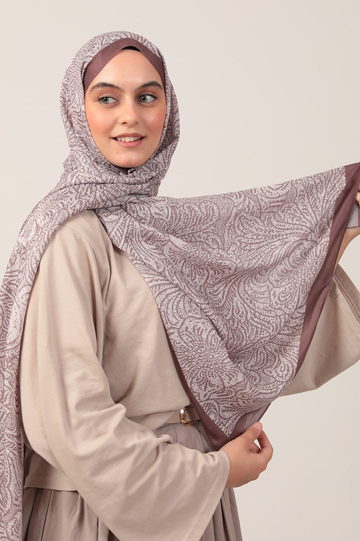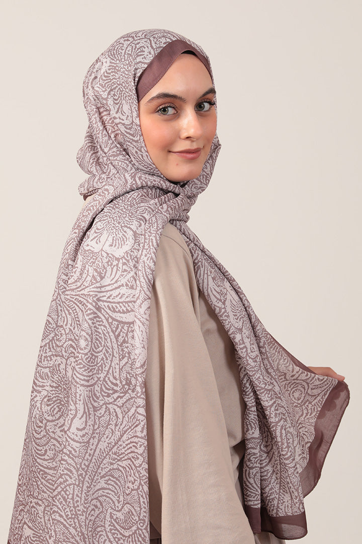 Pamuk İpek Şal Lalezar Desen Tatlı Kahve