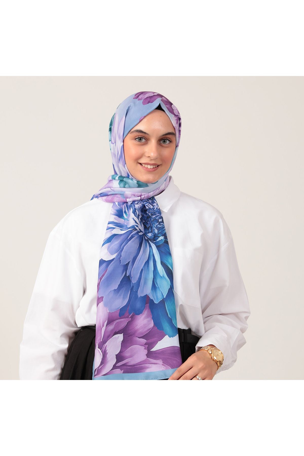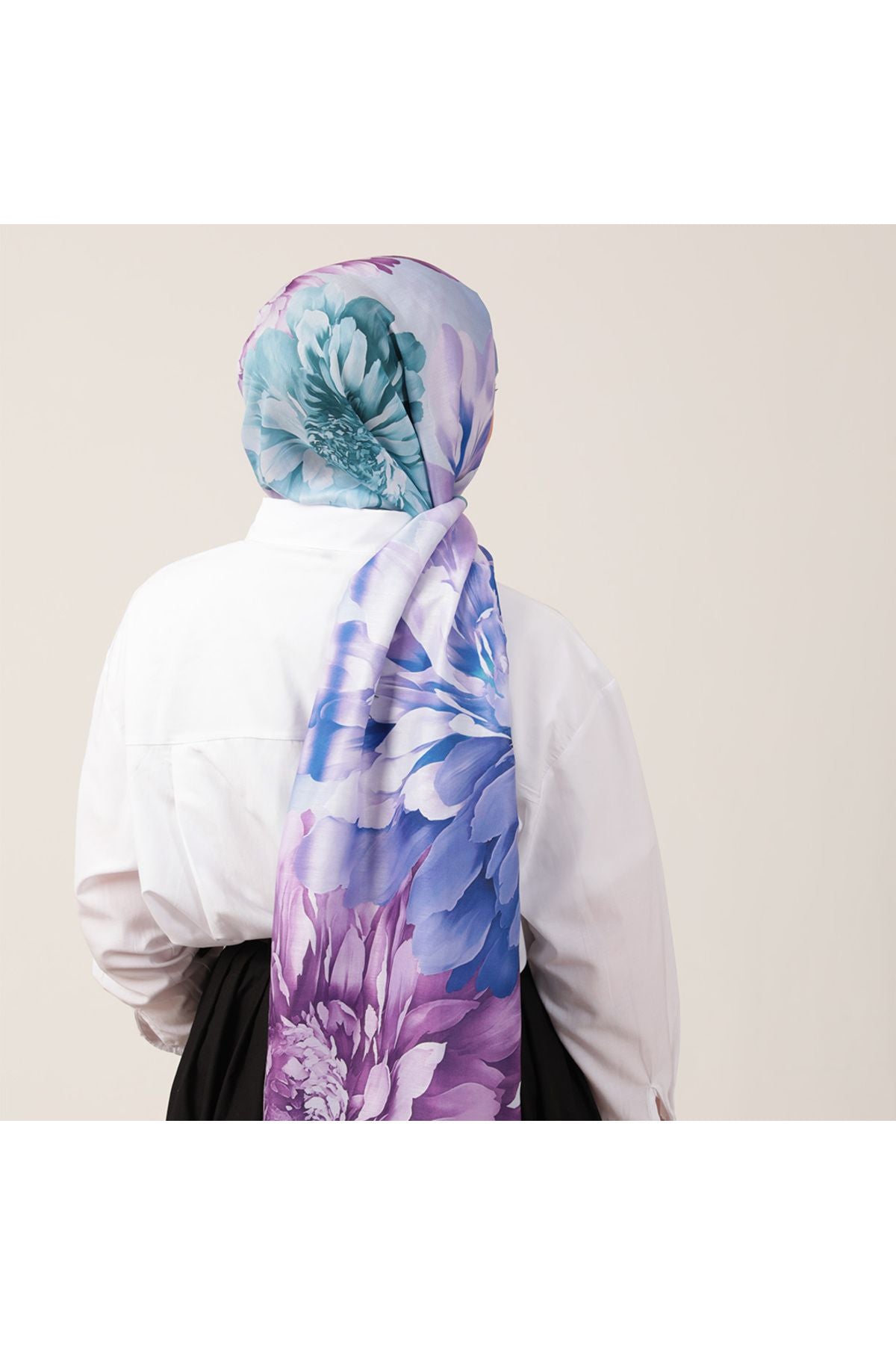 • Pamuk İpek Şal - Lotus Desen - Eflatun