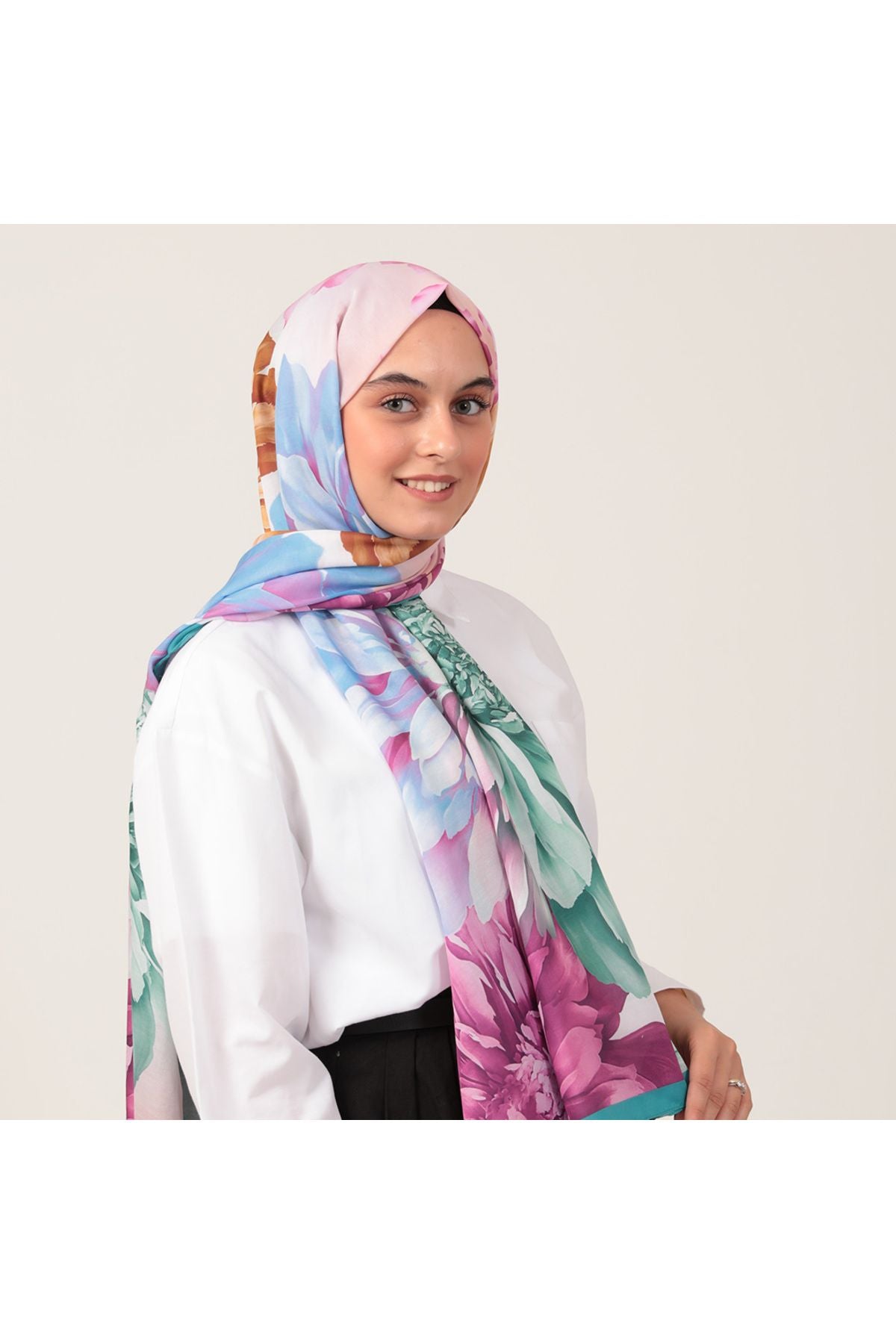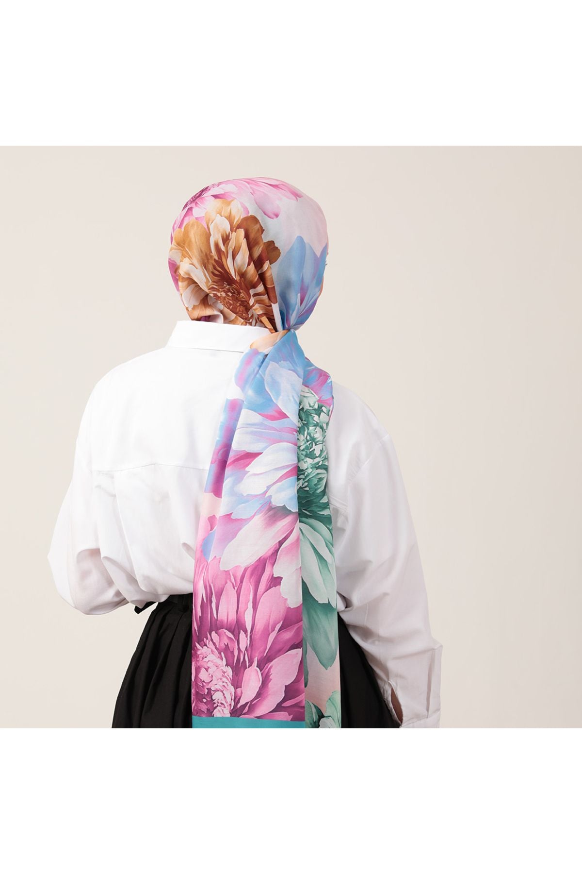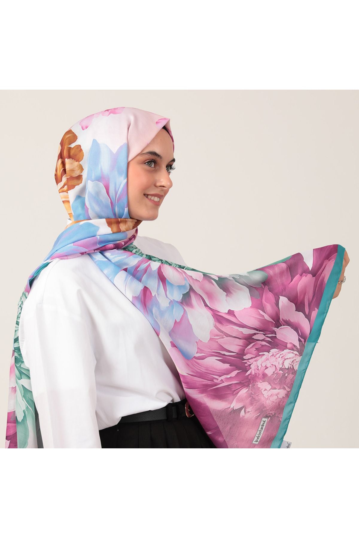PAMUK İPEK ŞAL - LOTUS DESEN - FUŞYA YEŞİL