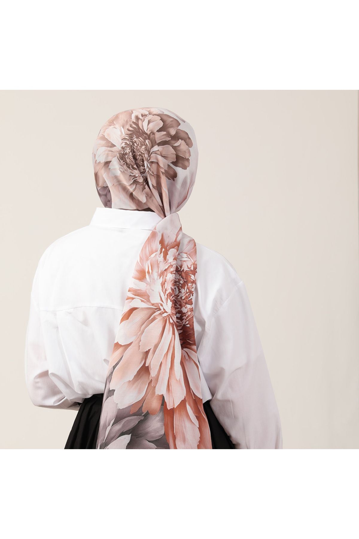 Lotus deseniyle zarif ve estetik bir görünüm kazandırarak şıklığınızı tamamlar; Kahverengi tonlarındaki renk seçeneğiyle her kıyafetle kolayca uyum sağlar ve şık bir tamamlayıcı olur; İpeğin doğal parlaklığı sayesinde ışığı yansıtarak göz alıcı bir etki yaratır;