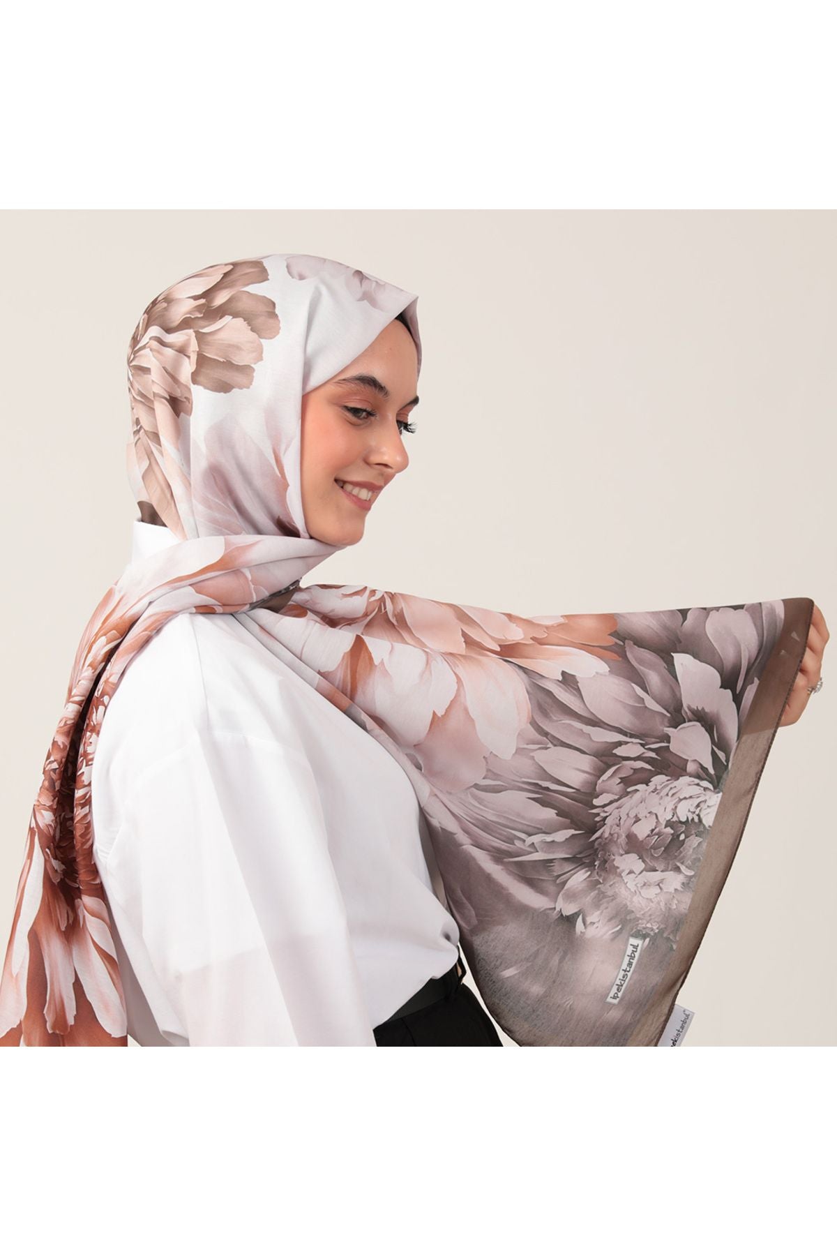 • Pamuk İpek Şal - Lotus Desen - Kahverengi