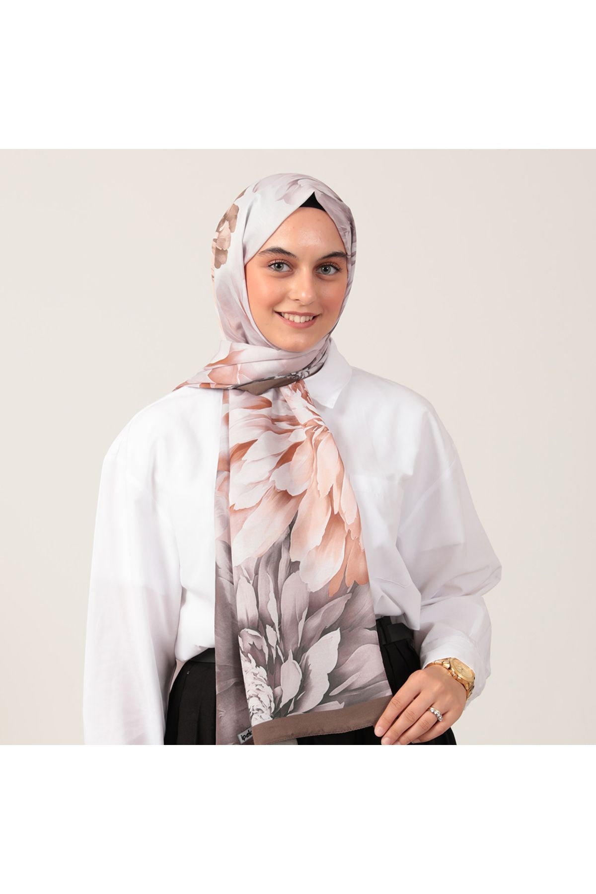 PAMUK İPEK ŞAL - LOTUS DESEN - KAHVERENGİ