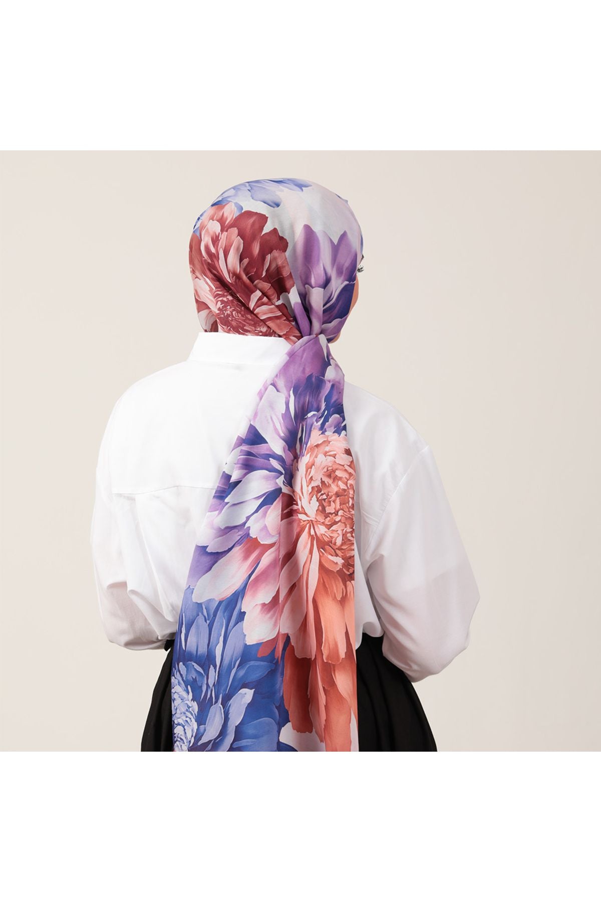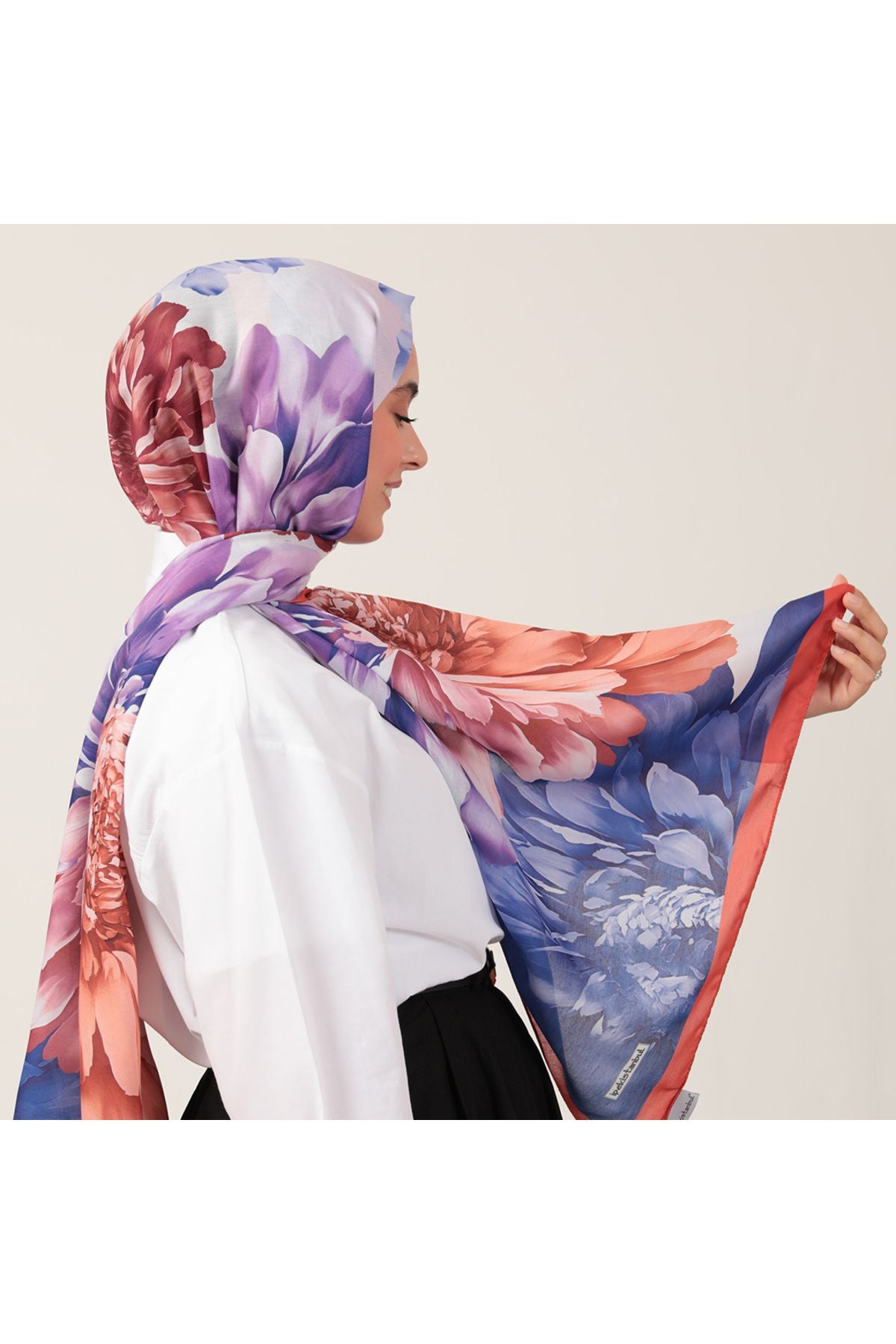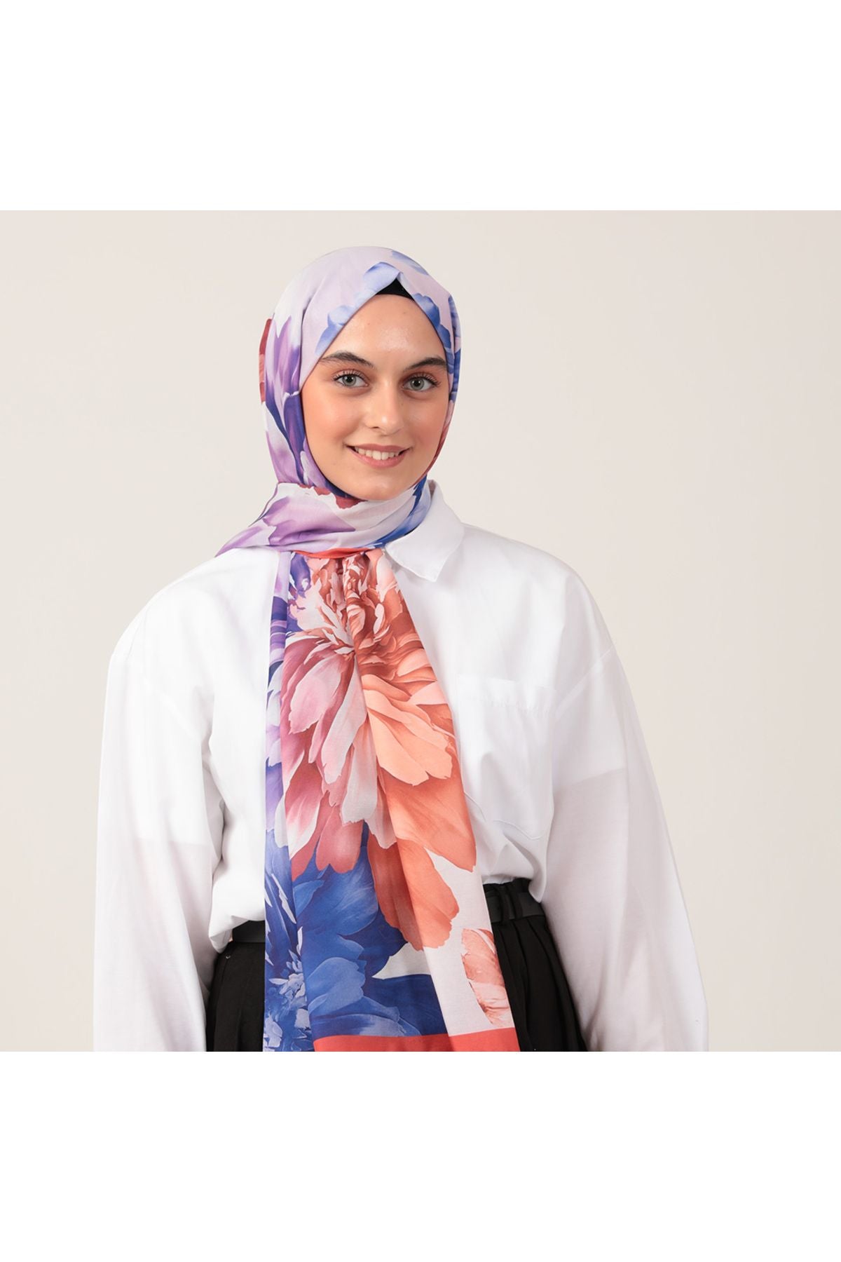 • Pamuk İpek Şal - Lotus Desen - Saks Kırmızı