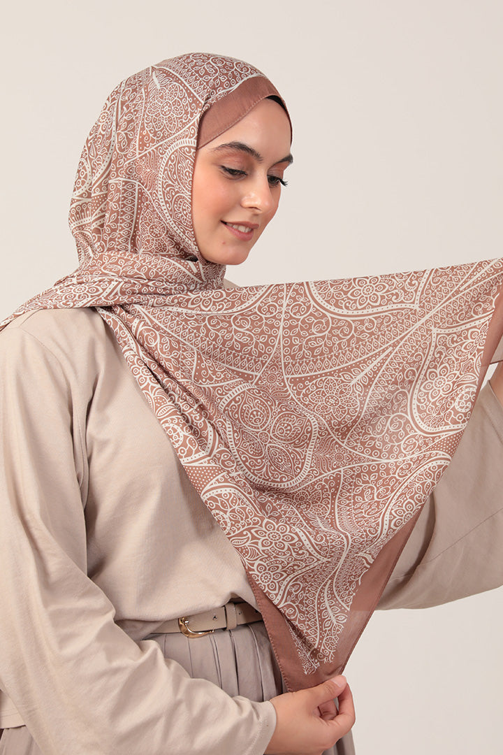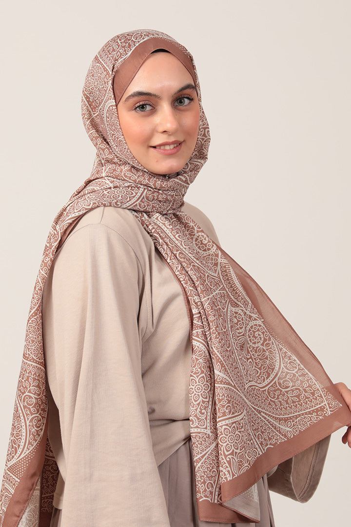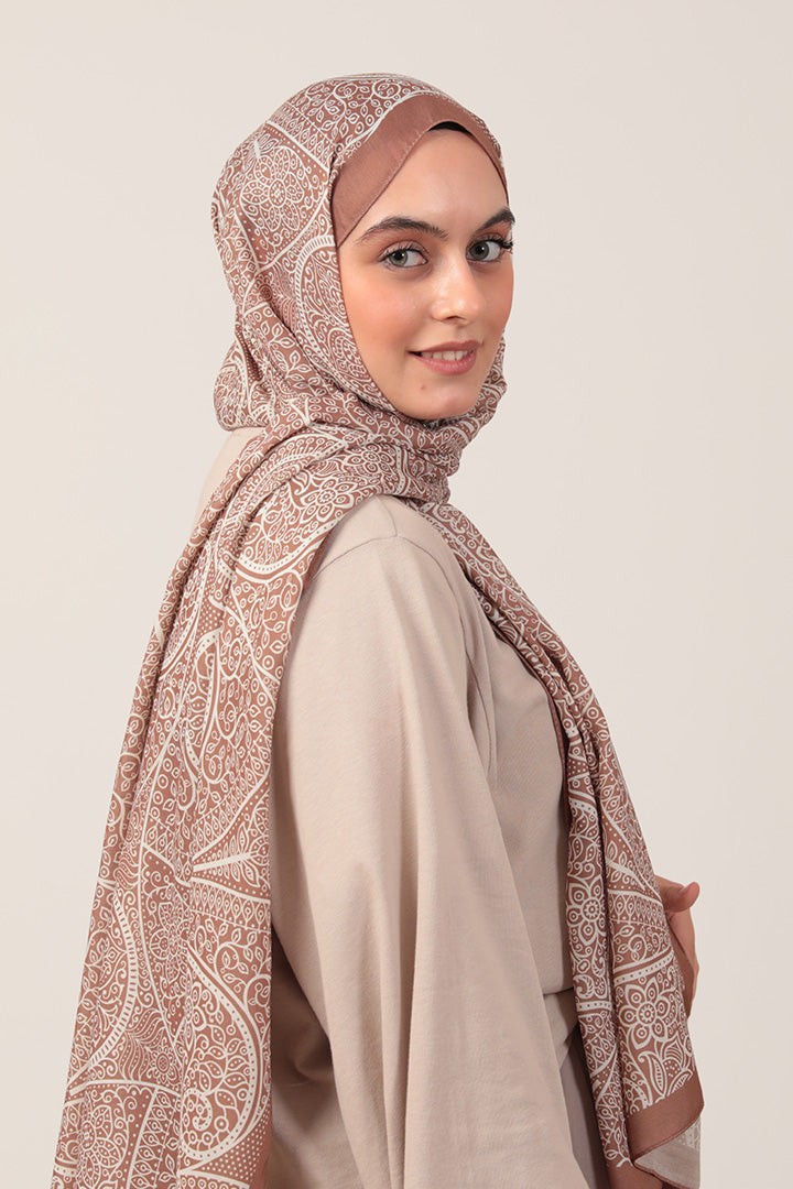 Pamuk İpek Şal Sarmaşık Desen Camel