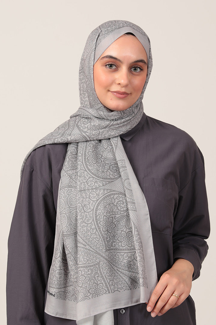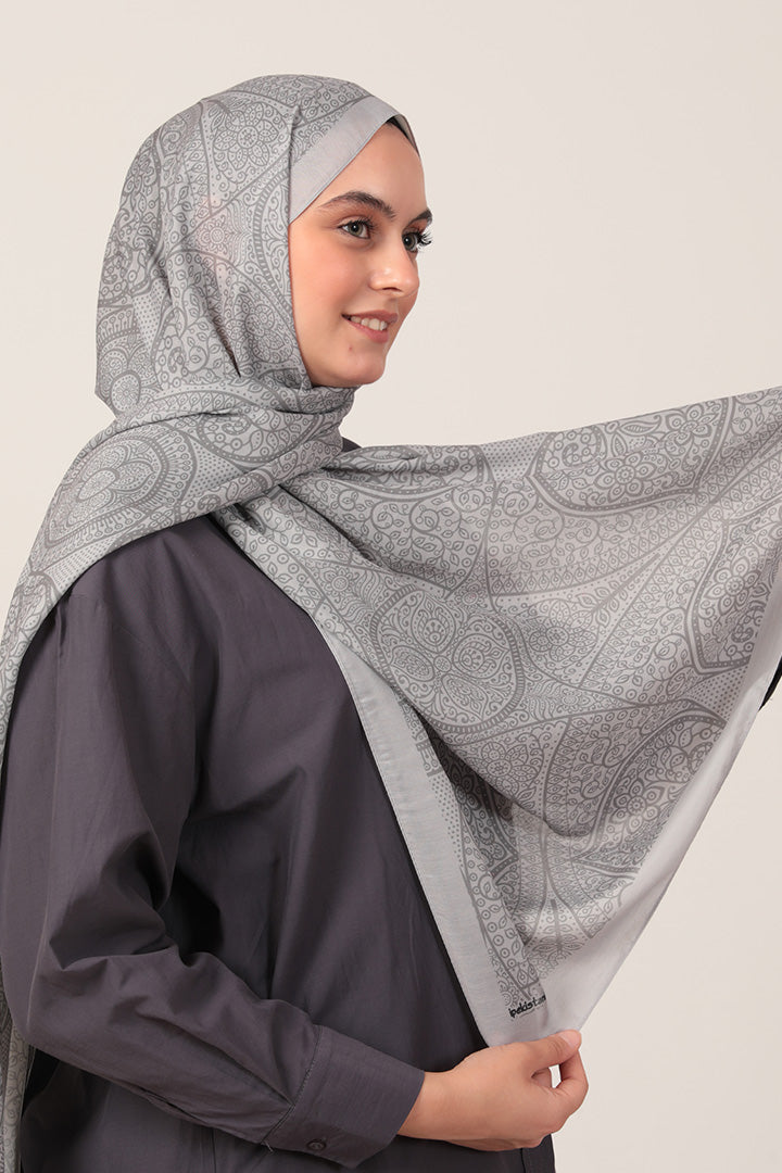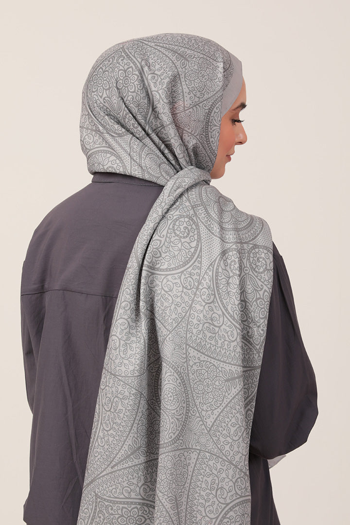Pamuk İpek Şal Sarmaşık Desen Gri