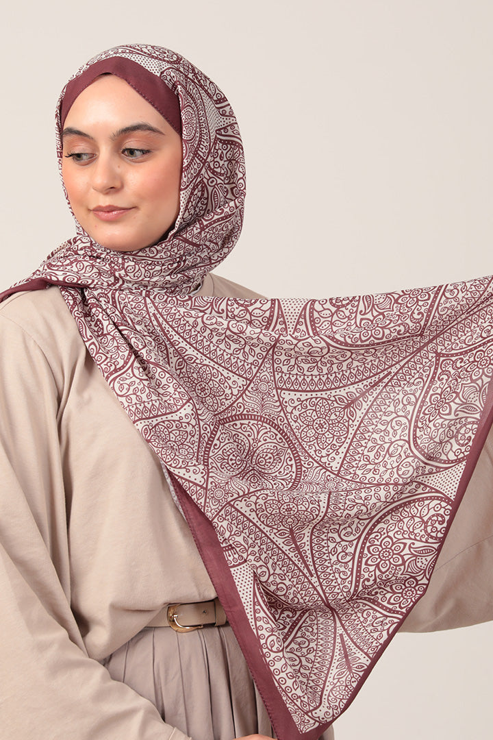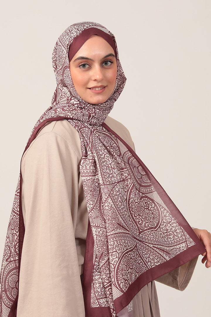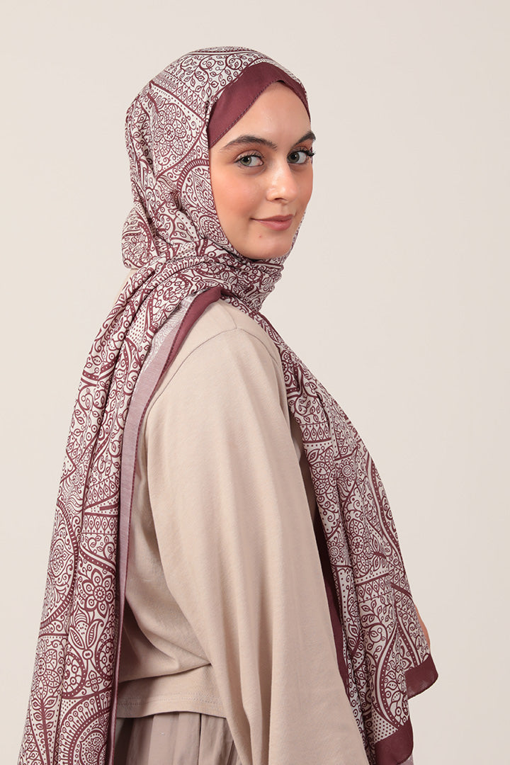 Pamuk İpek Şal Sarmaşık Desen Marshall Ekru
