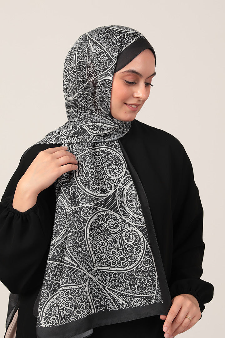 Pamuk İpek Şal Sarmaşık Desen Siyah