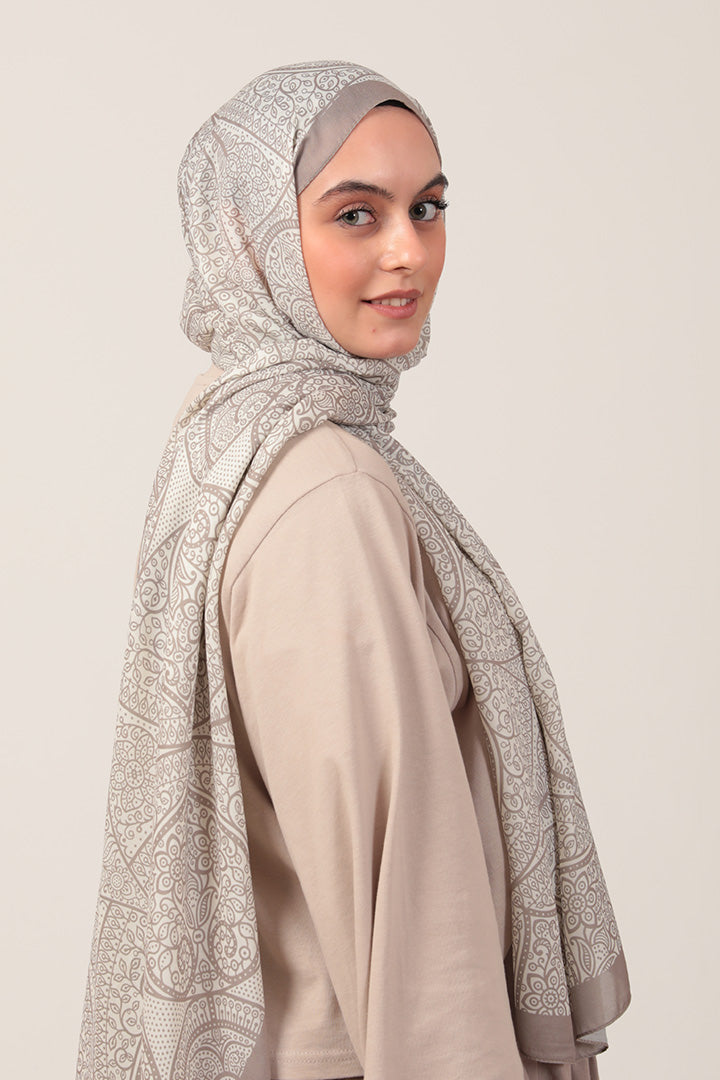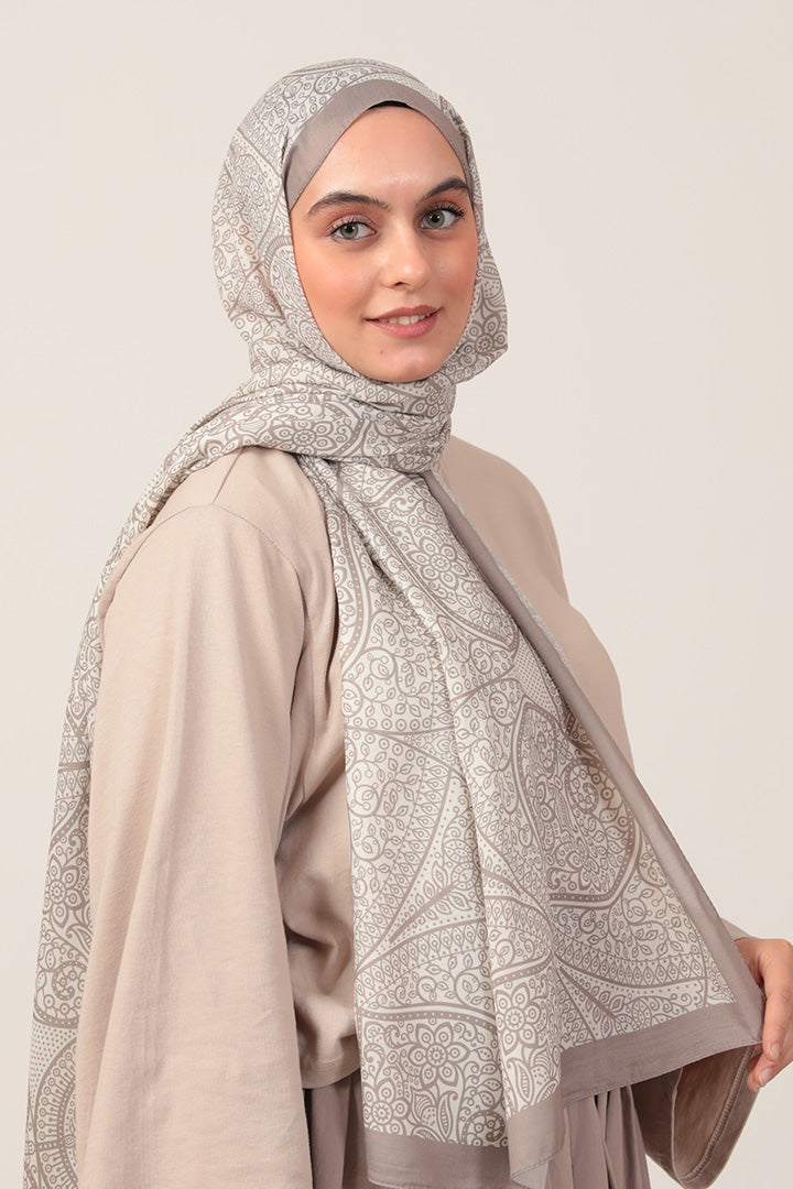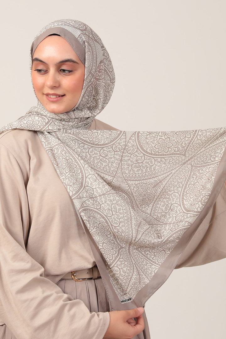 Pamuk İpek Şal Sarmaşık Desen Taş Ekru