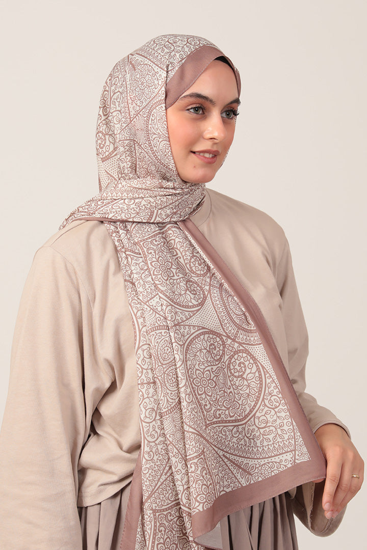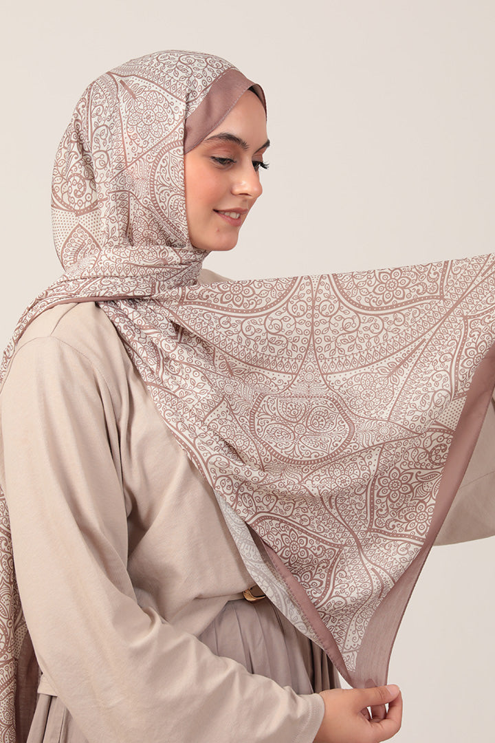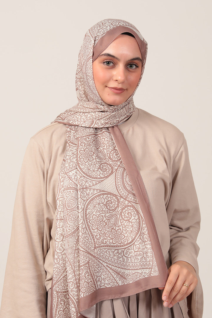 Pamuk İpek Şal Sarmaşık Desen Tatlı Kahve Ekru