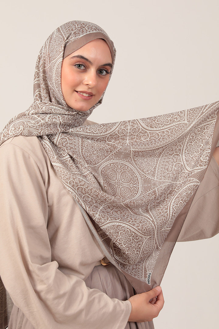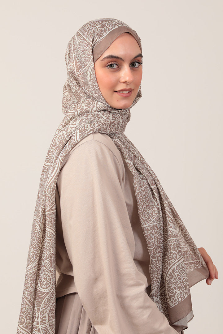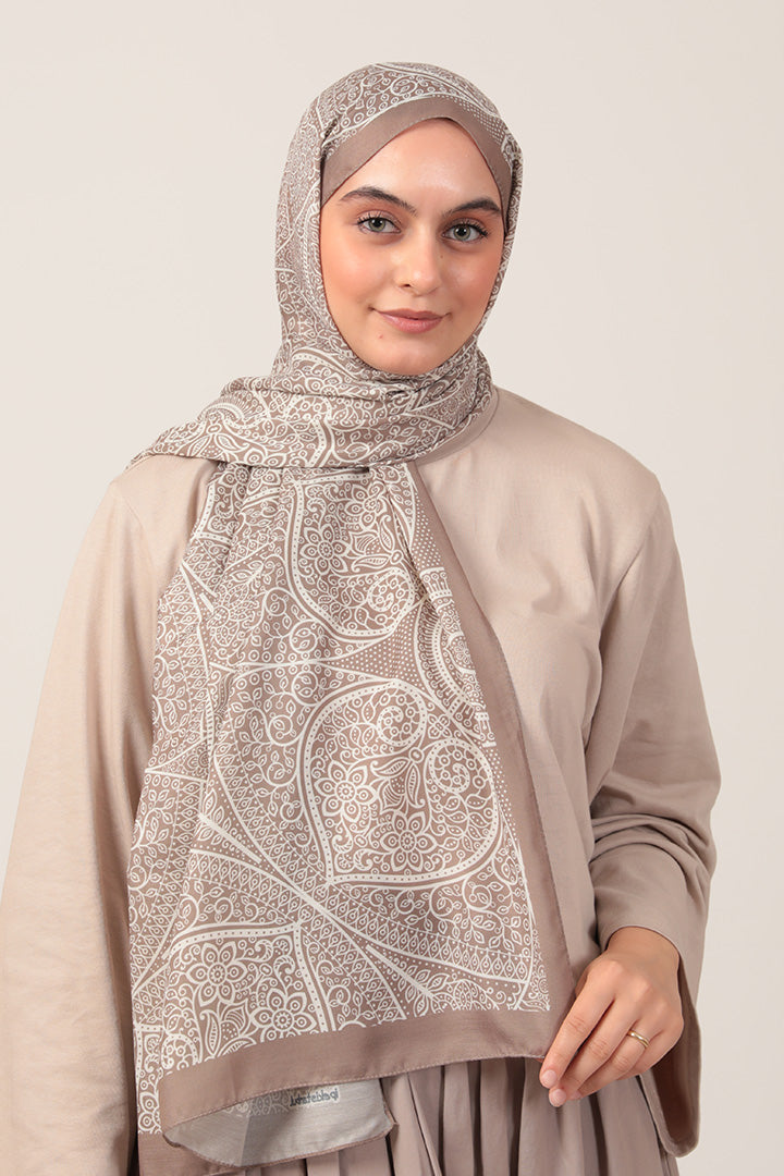 Pamuk İpek Şal Sarmaşık Desen Vizon