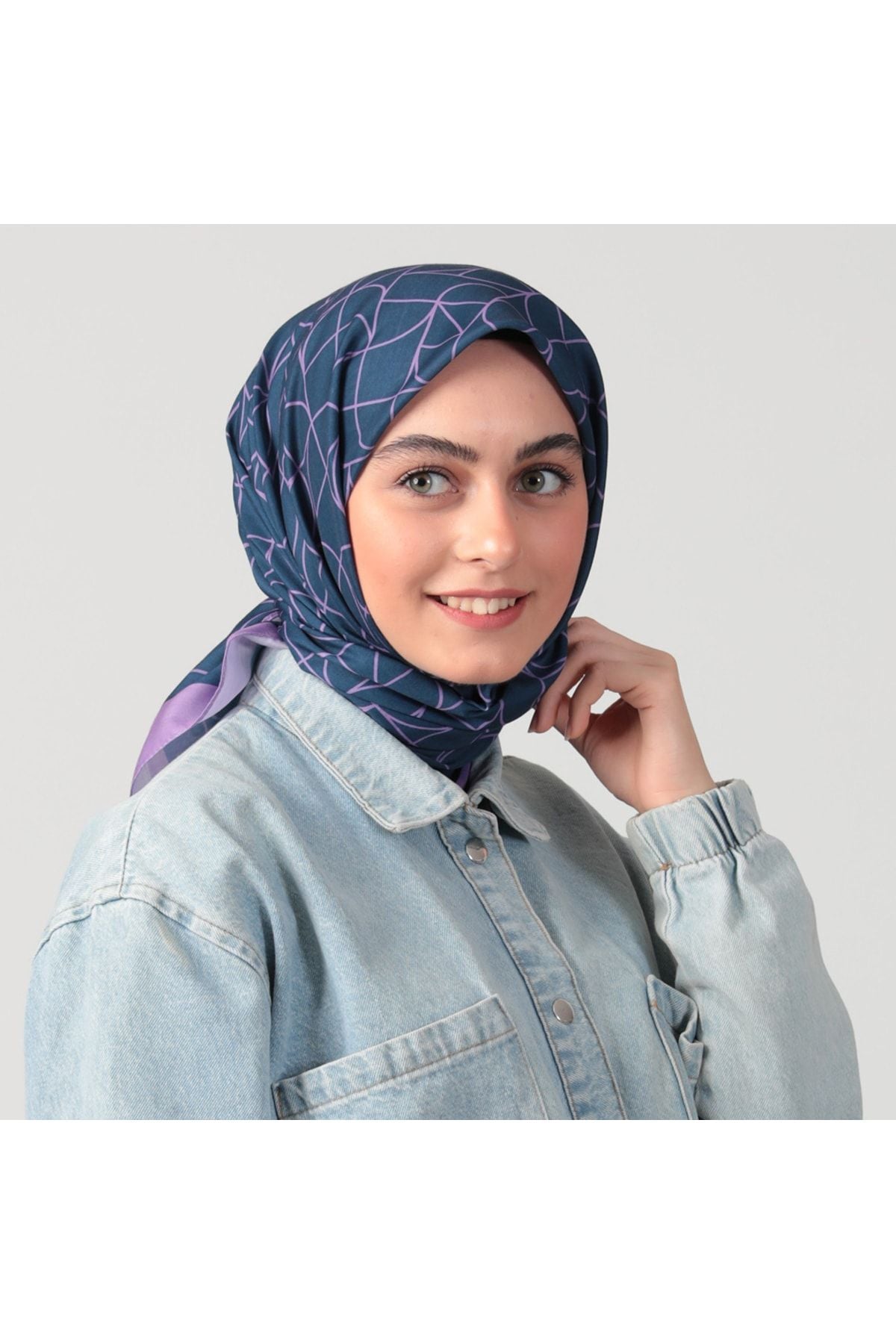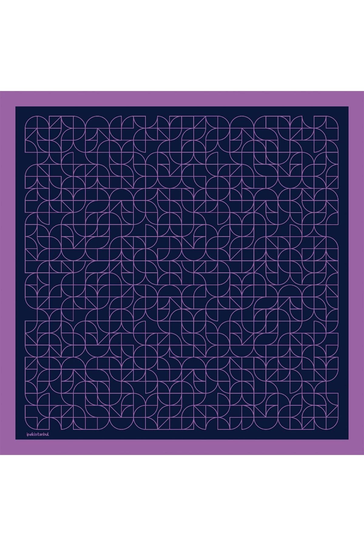 Pamuk Ipek Eşarp - Geometrik Desen - Mor