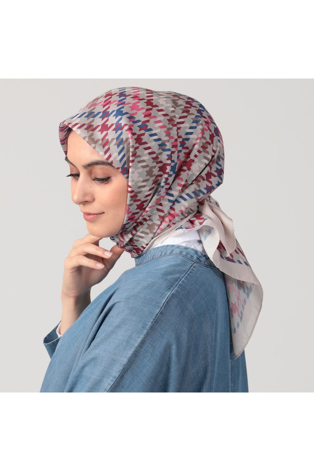 • Pamuk Ipek Eşarp - Kazayağı Desen - Pudra