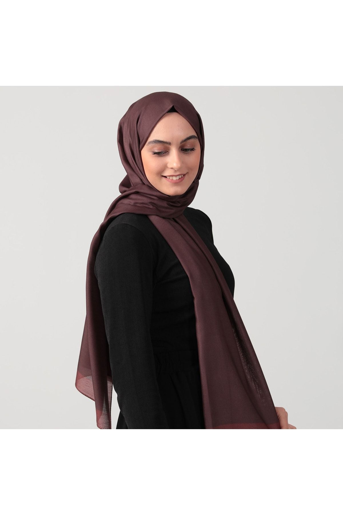 • Pamuk Ipek Şal - Düz Renk Şal - Koyu Kahve