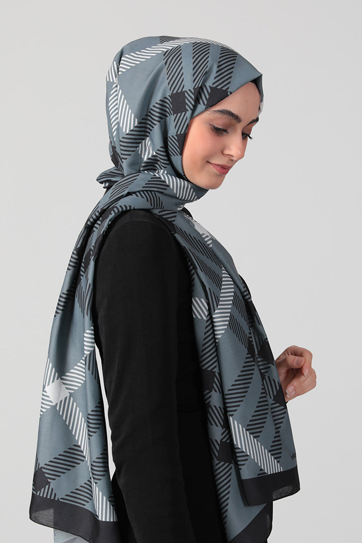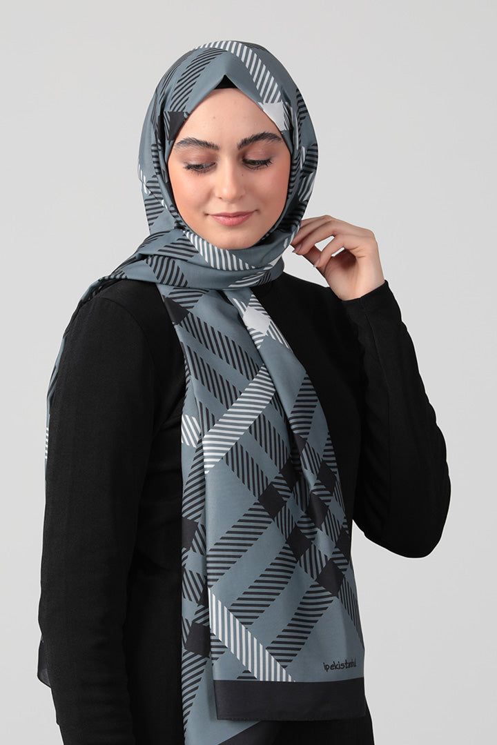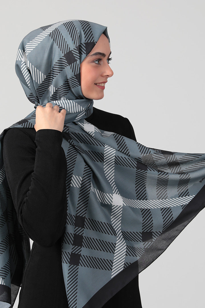 • Pamuk Ipek Şal - Ekose Desen - Antrasit