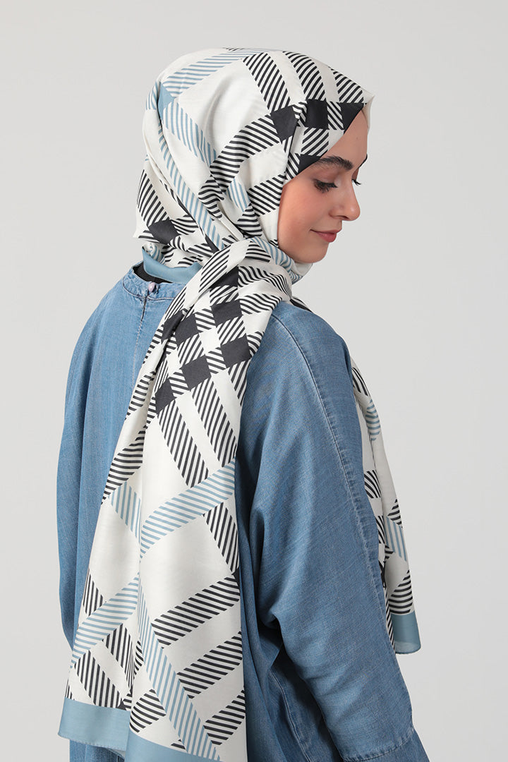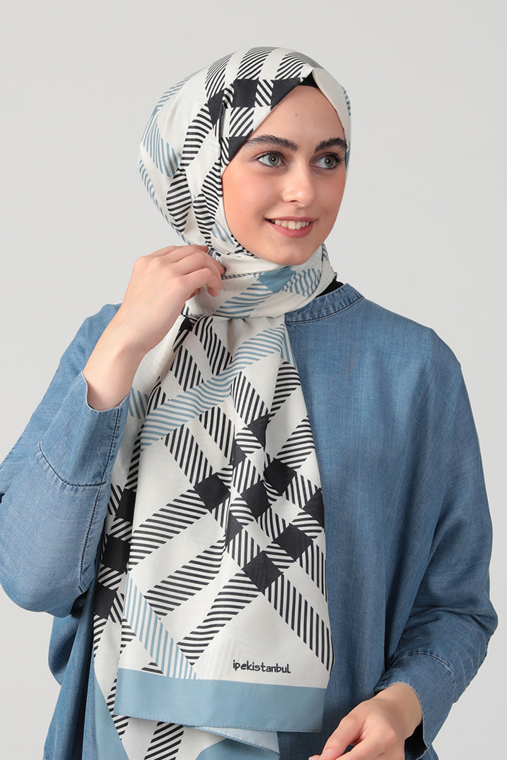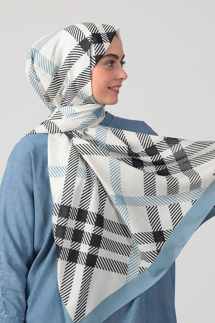• Pamuk Ipek Şal - Ekose Desen - Çakmak Taşı
