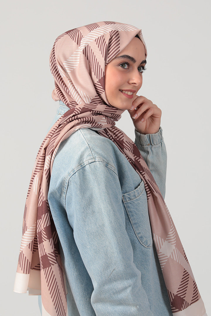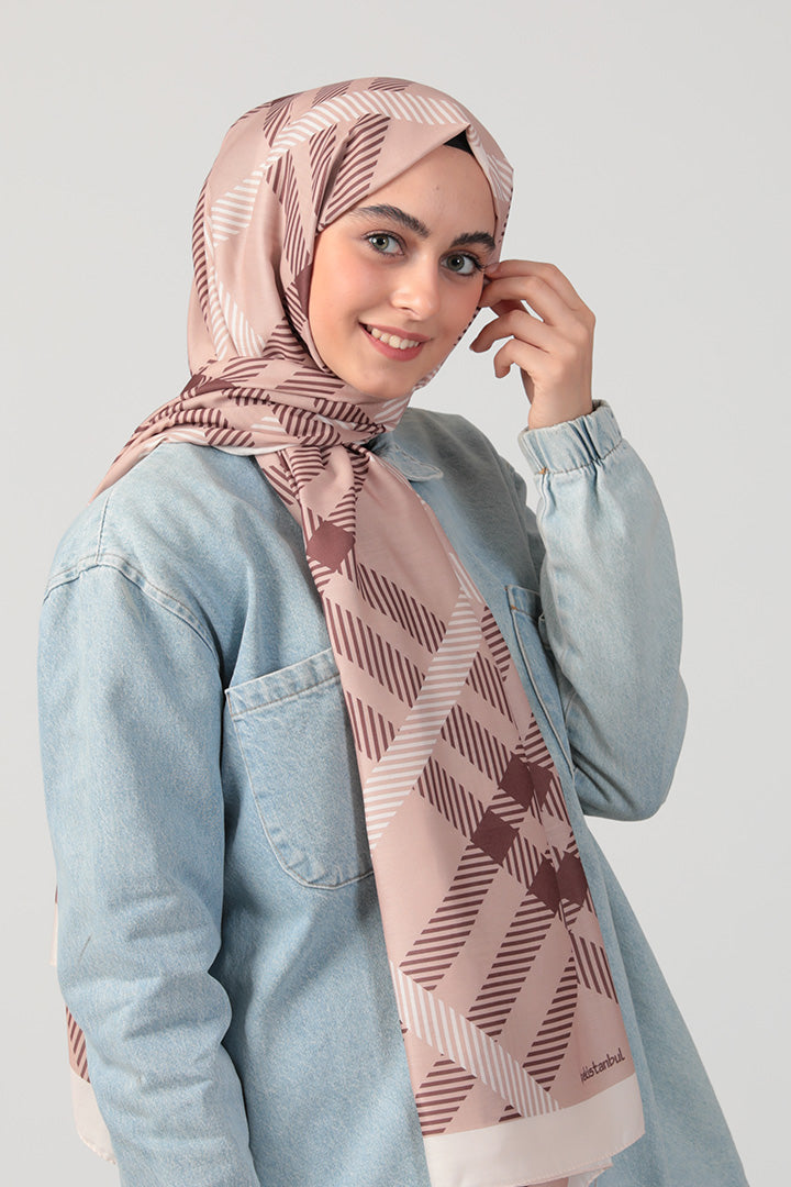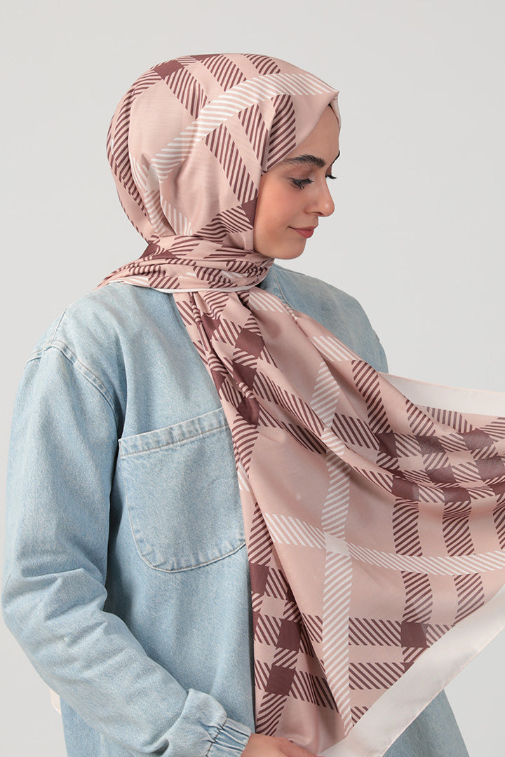 • Pamuk Ipek Şal - Ekose Desen - Kahverengi